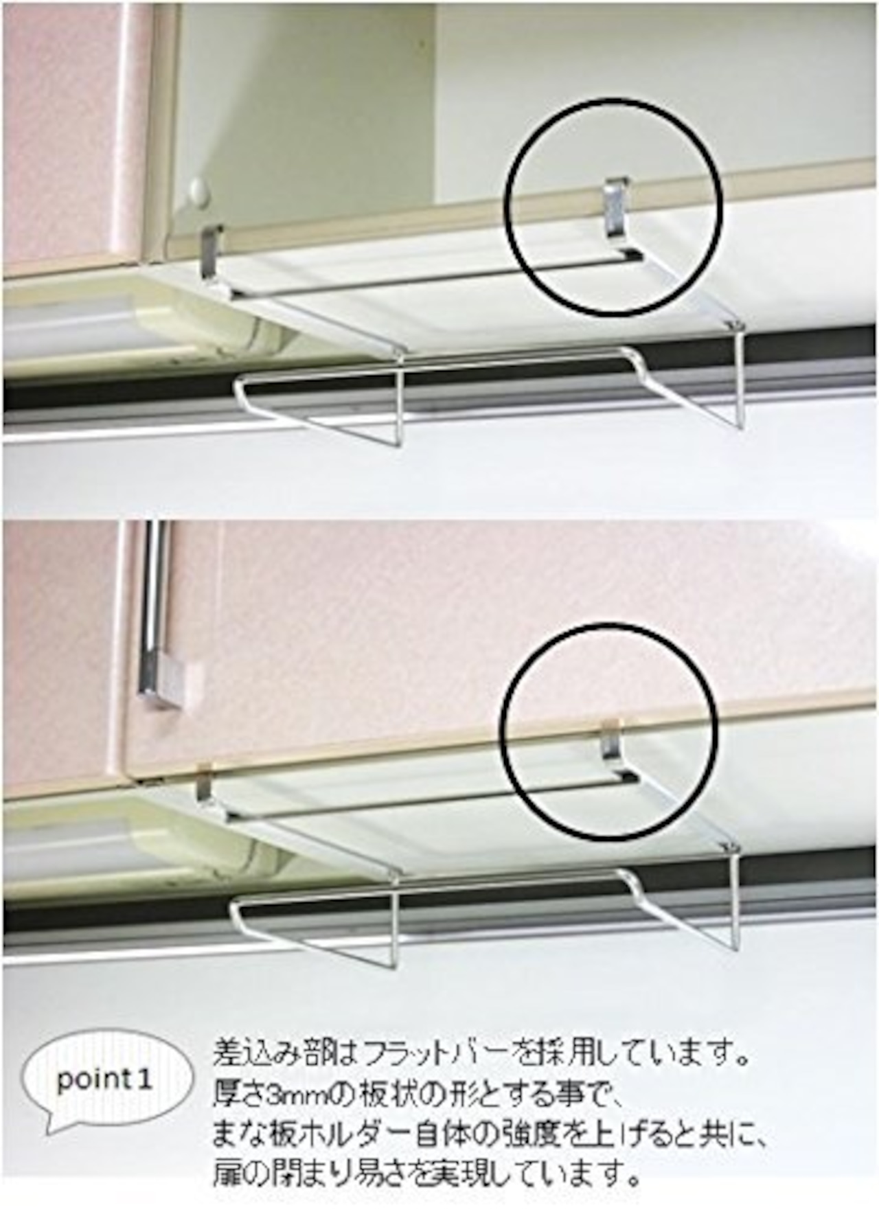 【日本製】吊り戸棚の棚板に引っ掛けるだけで簡単に取付が可能なまな板ホルダー