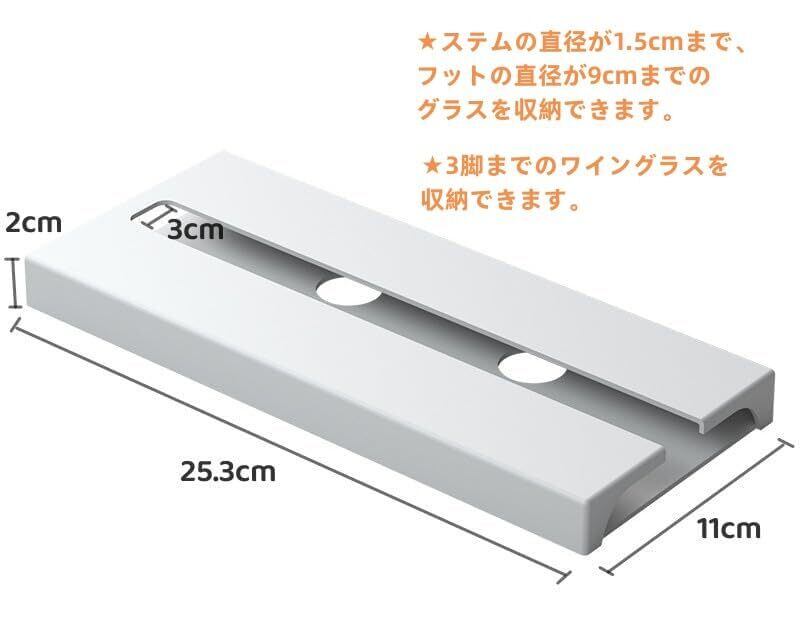 【商品仕様】:素材:プラスチック、サイズ:長さ25.3cm*幅11cm*高さ2cm/個、セット内容:白*2個 ご注意:ステムの直径が1.5cmまで、フットの直径が9cmまでのグラスを収納できます。3脚までのワイングラスを収納できます。