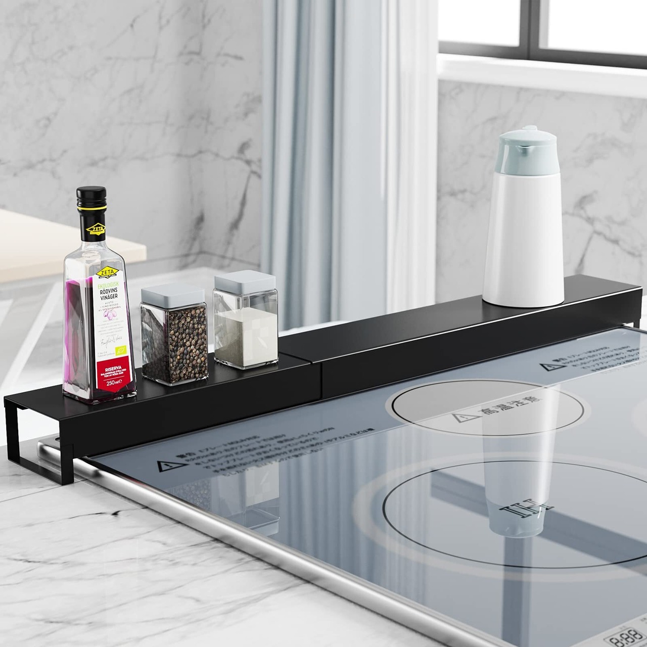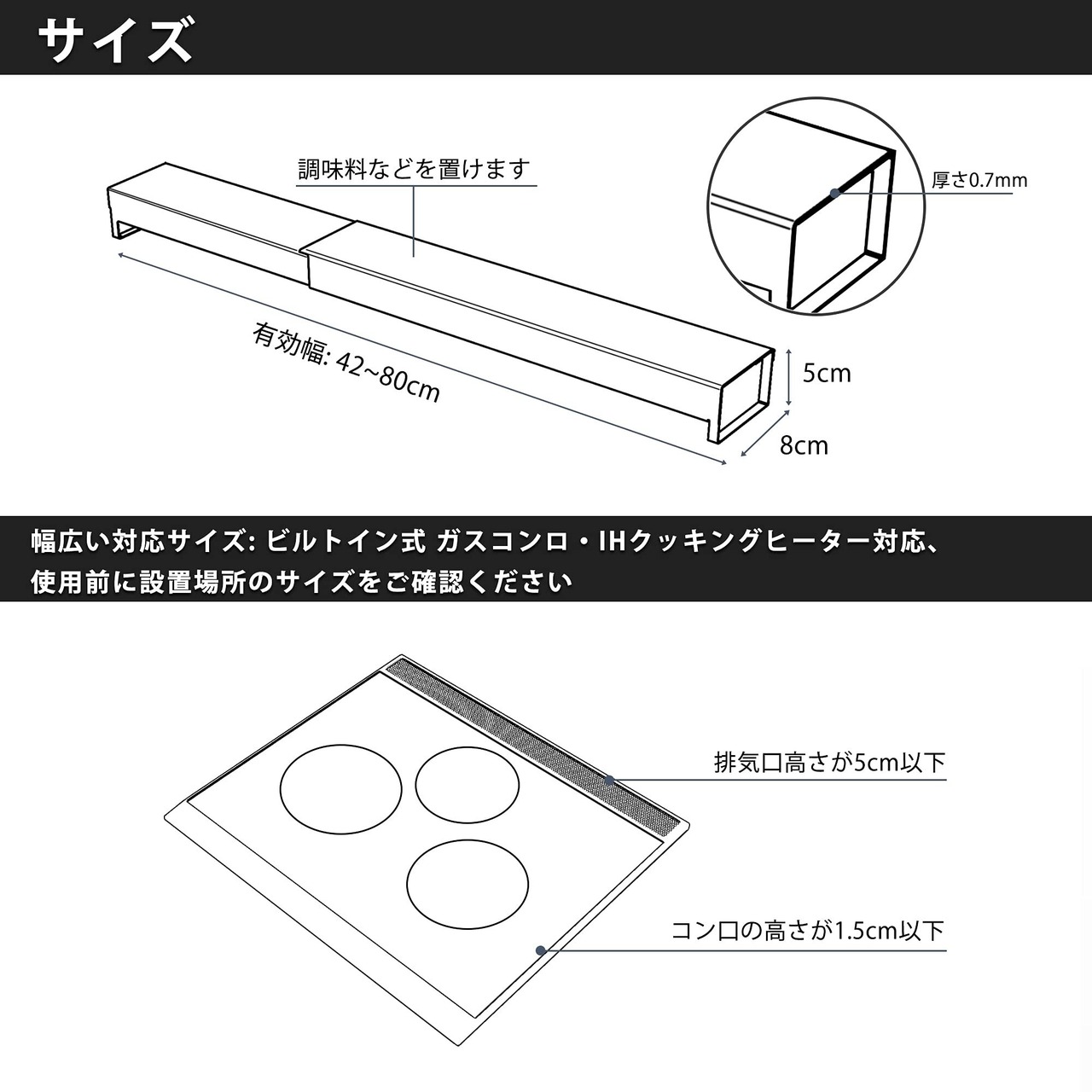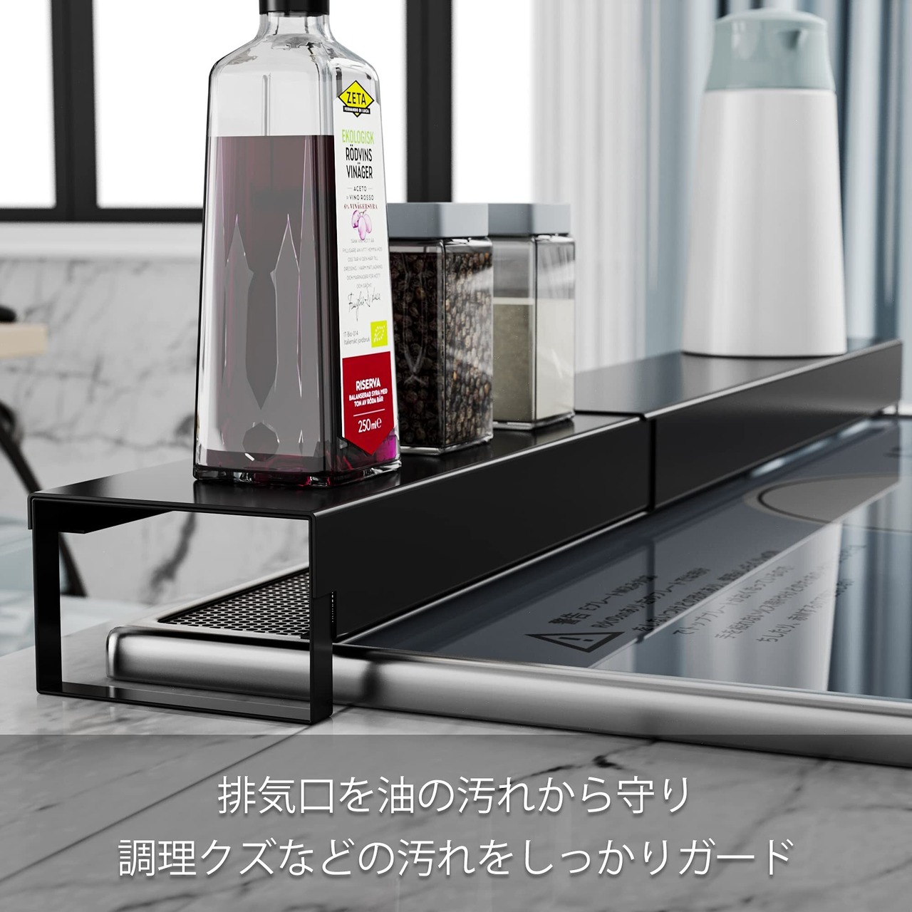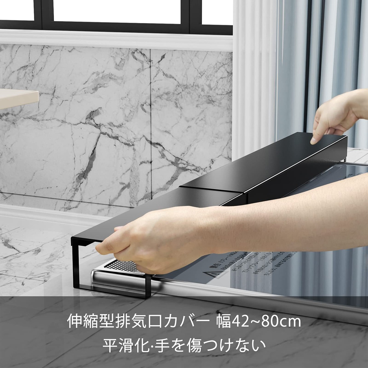 Orimade 伸縮 排気口カバー ブラック 幅42~80cm コンロカバー までのビルトインガスコンロ・IHコンロ対応 調味料ラック 油はねガード 約W42~80XD8XH5cm