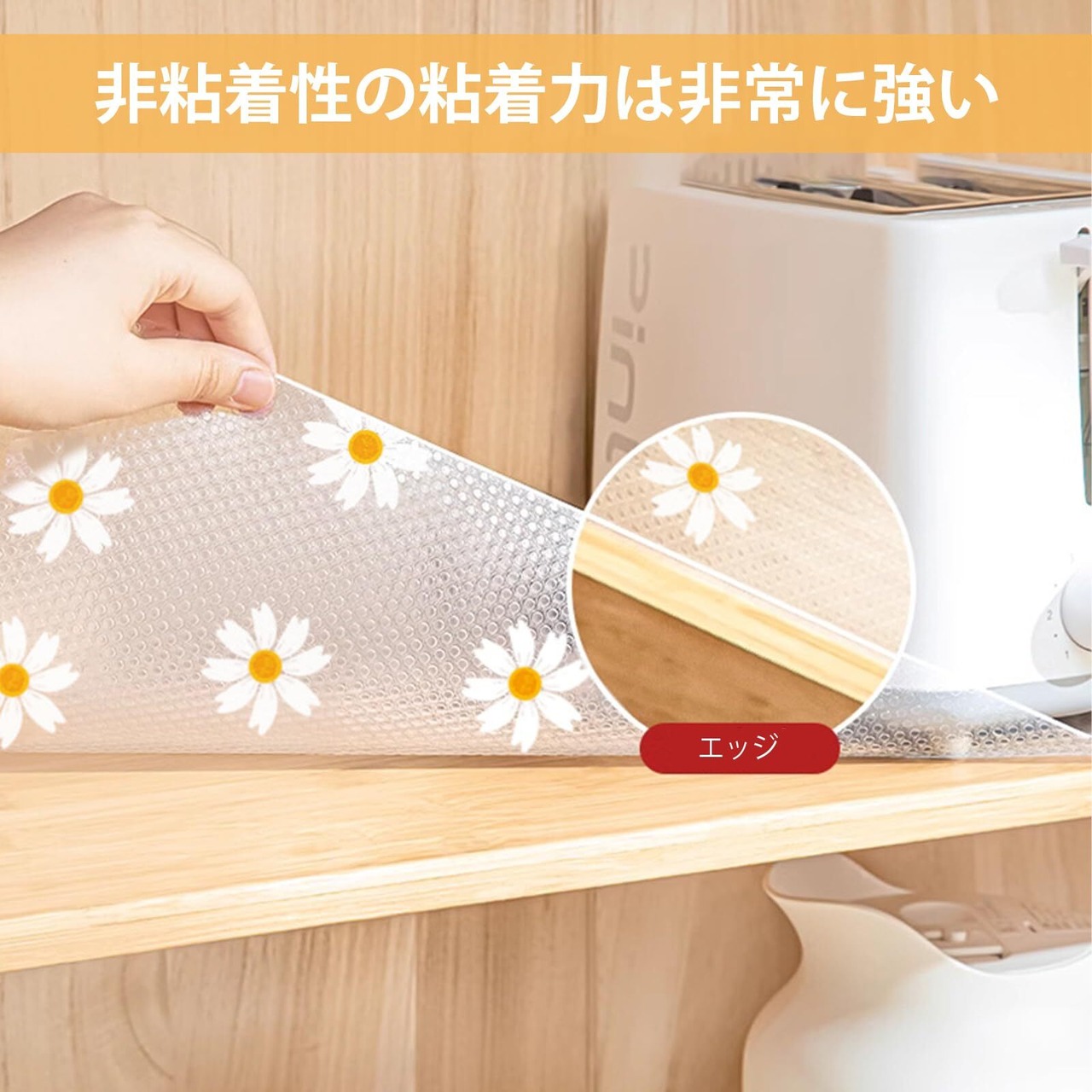引き出しマットの表面には小さなデイジー模様がデザインされており、全体的にシンプルで新鮮、ファッショナブルで用途が広いです。冷蔵庫マットとしてだけでなく、棚マット、キャビネットマット、引き出しマット、プレースマットなどとしても使用できます。家を清潔に保ちましょう!