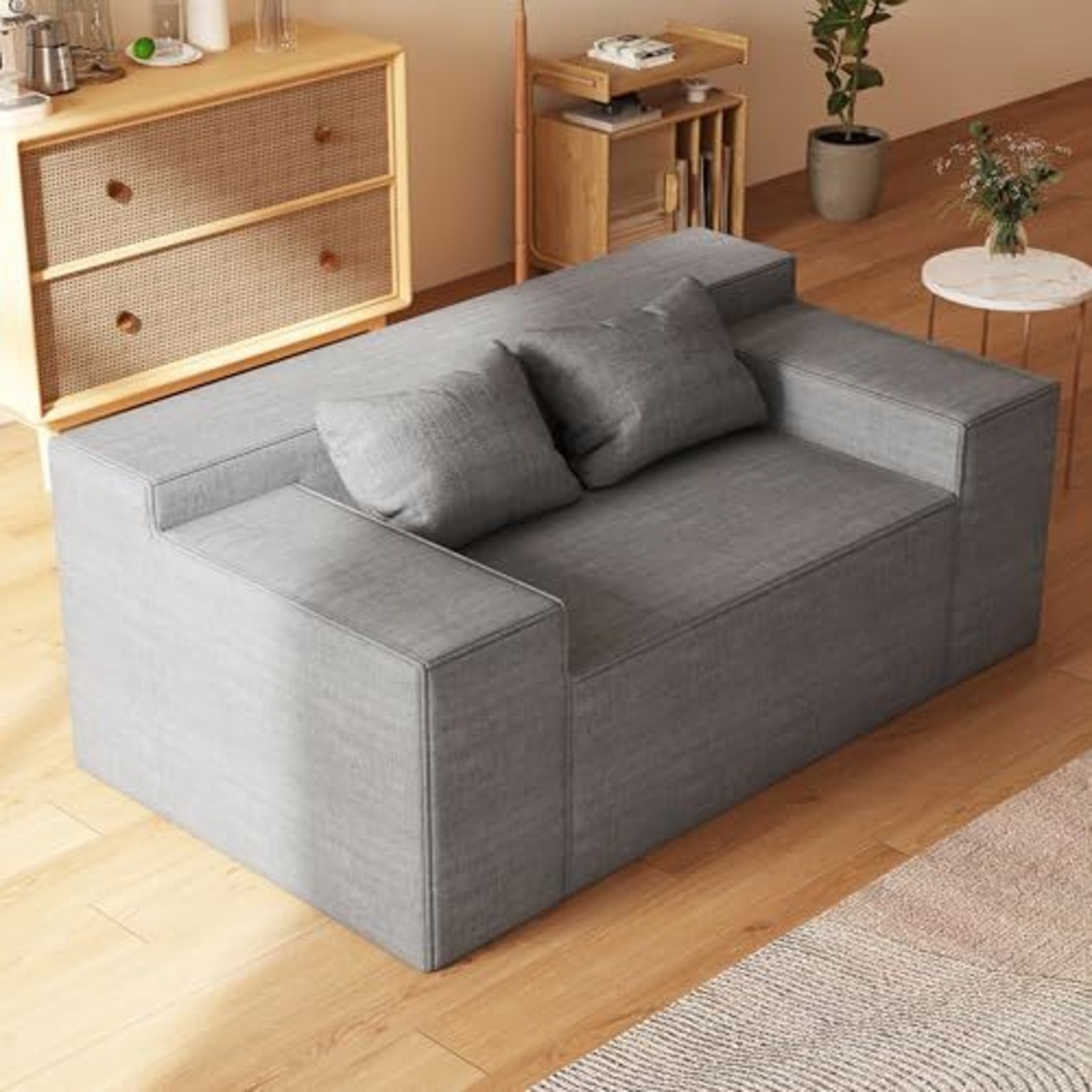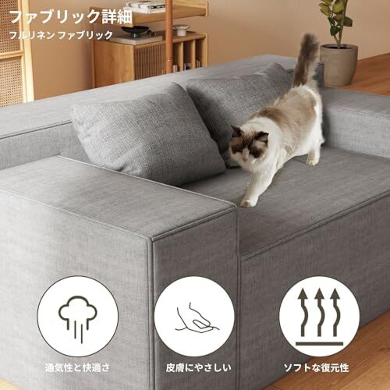 【特価商品】PurrJoys ソファー 2人掛け 幅120cm | ハイブリッド箱入ソファーベッド | 組み立て不要 | 2つの枕付き | 猫の爪に強いリネン生地 | 小さなスペースに最適 | 一人用にも対応,グレー