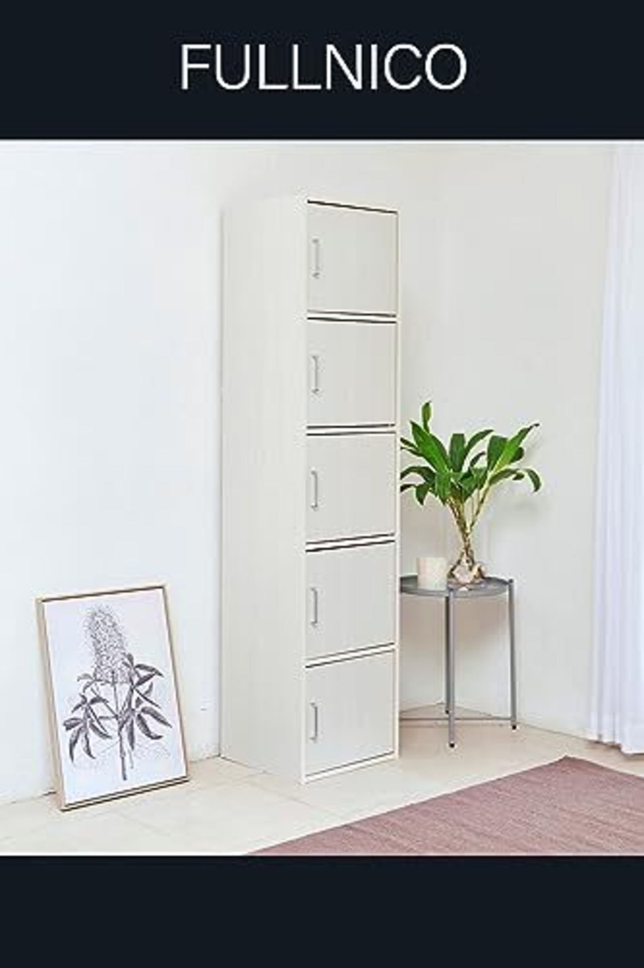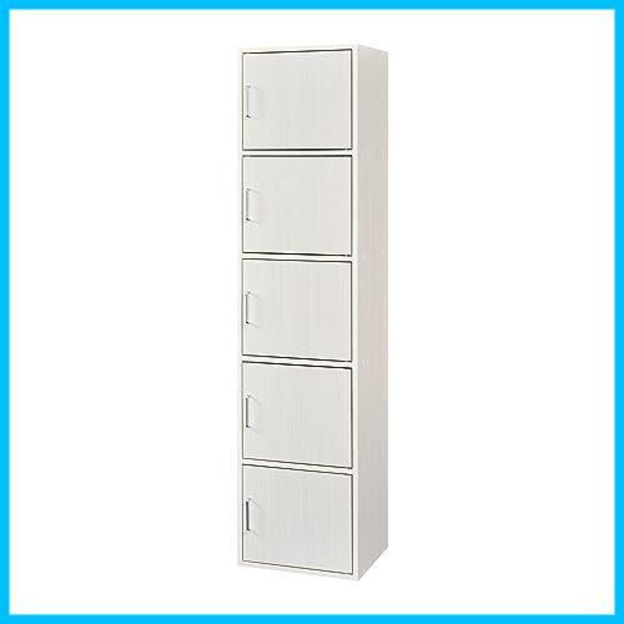 白井産業 収納棚 ラック ストッカー 5段の扉付き収納 同シリーズで組み合わせ自由自在 一人暮らしの部屋や狭いスペースにぴったりサイズ ホワイト 白木目 ベーシックデザイン 幅43×奥行39.3×高さ179.7cm FUL-1845 5D WH フルニコ