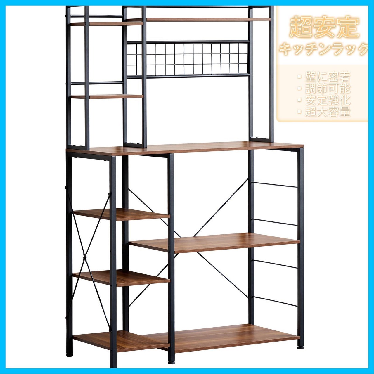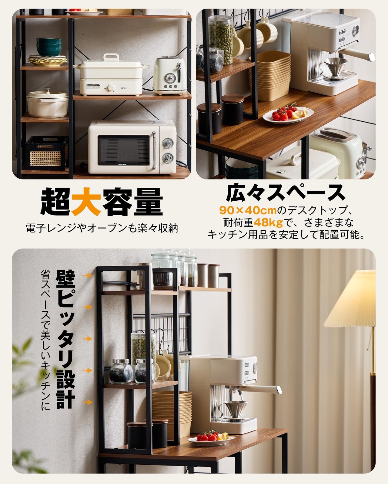 HARUMIN キッチンベイカーラック キッチンラック レンジラック 幅90×奥行40×高さ145cm キッチン収納ラック 大型レンジ対応 オープンラック レンジボード キッチンカウンター 食器棚 強度安定 省スペース おしゃれ ブラウン・黒