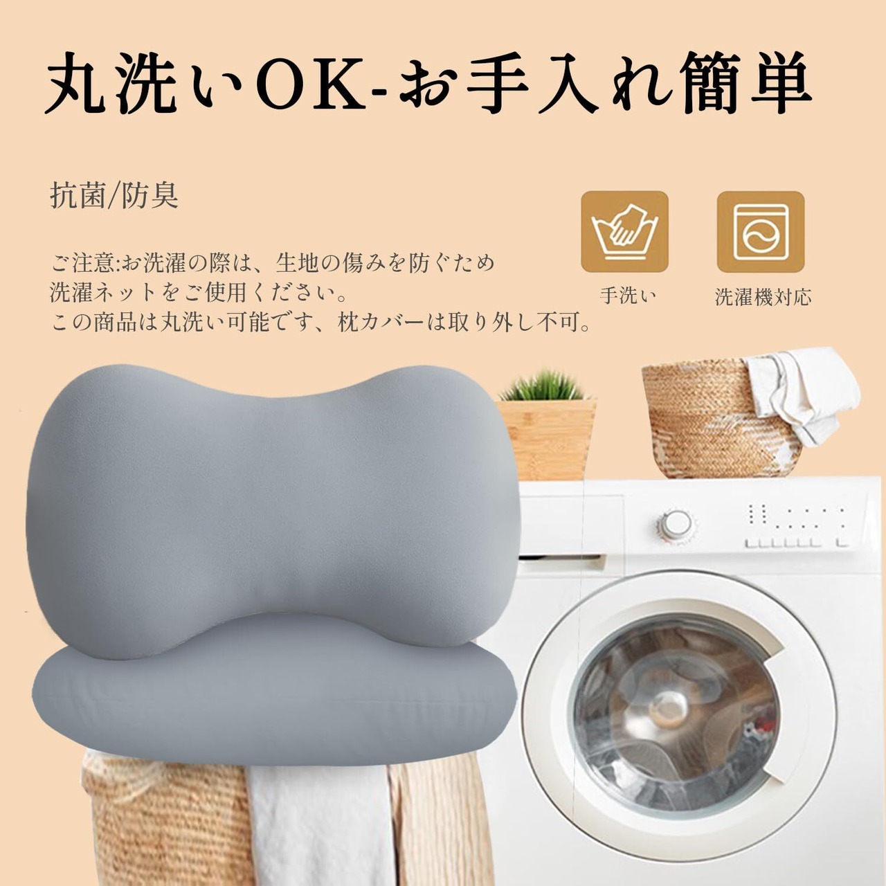 【丸洗いOK‐お手入れ簡単】本体を(洗濯ネットに入れ)洗濯機に入れ、丸洗いすることができ、臭いや菌・ダニなどの心配がなく、いつも清潔に保つことができます。手間をかけずに清潔を維持できるので、忙しい現代人にぴったりです。※この商品は丸洗い可能です、枕カバーは取り外し不可。