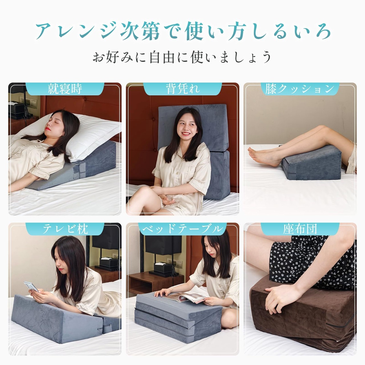 【人気商品】KYAKO 三角クッション 高反発 逆流性食道炎 枕 背もたれ クッション ベッド 三角枕 腰痛 クッション テレビ枕 ベッド背もたれ 傾斜マット 傾斜まくら 傾斜枕 足上げ カバー洗濯可能 体圧分散 就寝用 軽量 固め (BROWN)