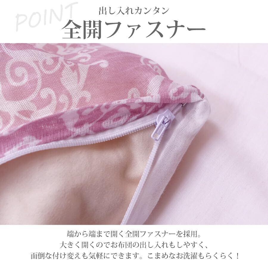 ガーゼ 毛布カバー ファスナー付き 4ヶ所ヒモ付き 寝具カバー 布団カバー 模様 ペイズリー ハーブフラワー ダマスク (677・ピンク)
