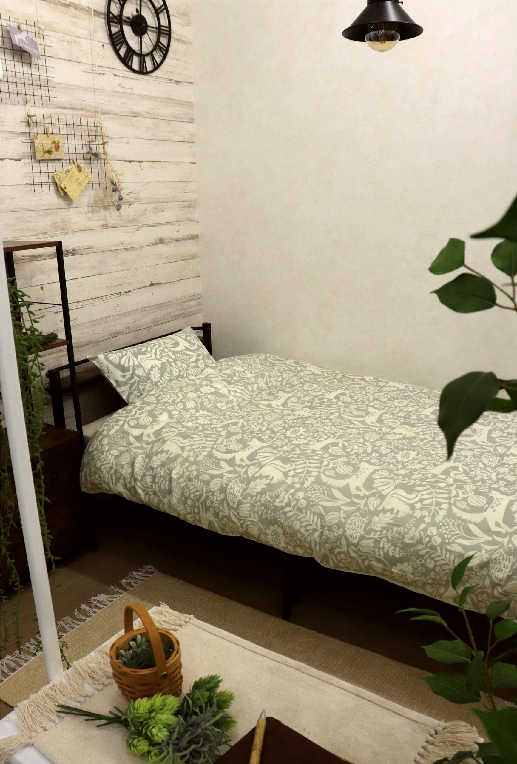 【特価セール】CAMEL PALMS 日本製 綿100% ガーゼ 片面和晒 肌掛布団カバー 着脱簡単テープ付スナップ シングル 140×190cm 森の動物たちB