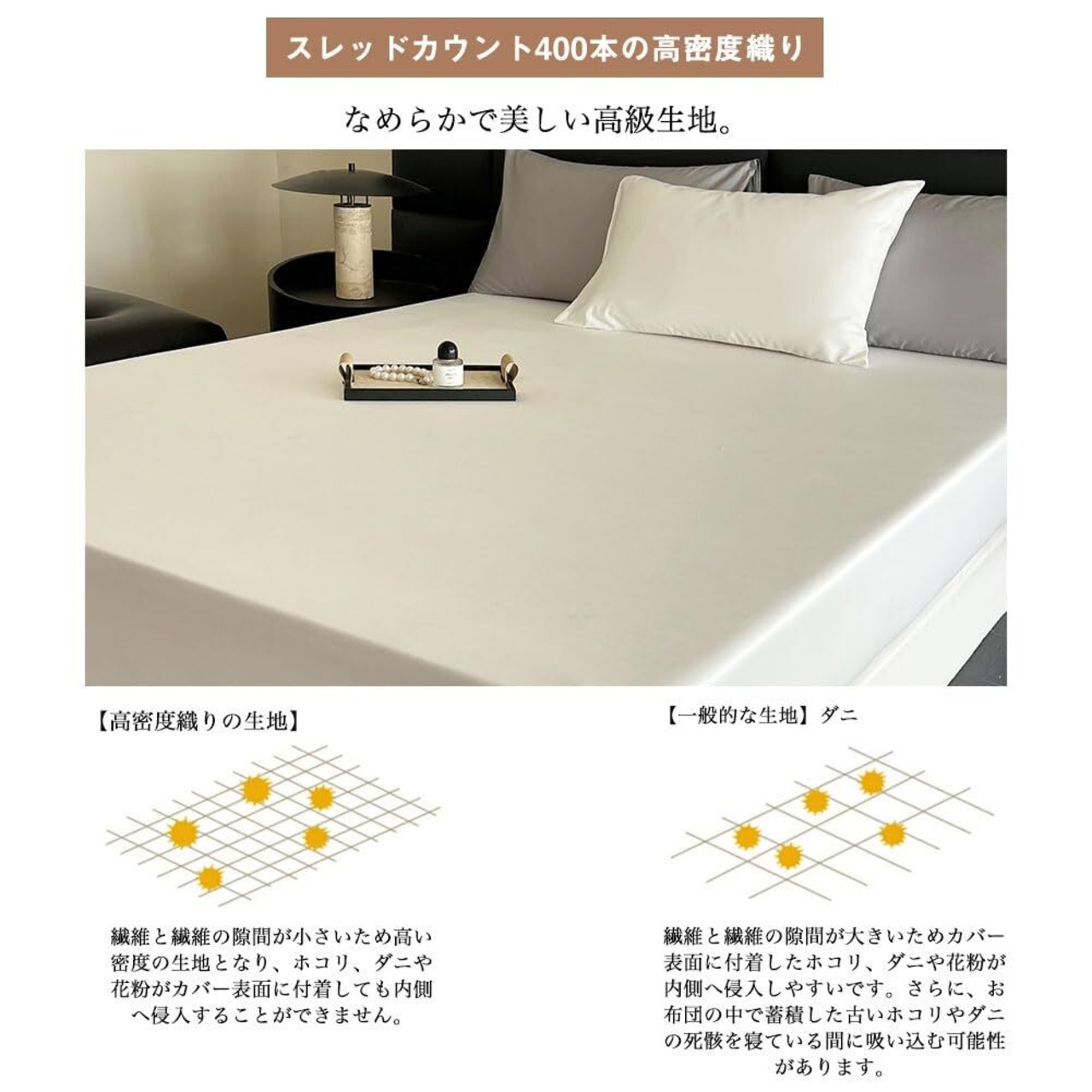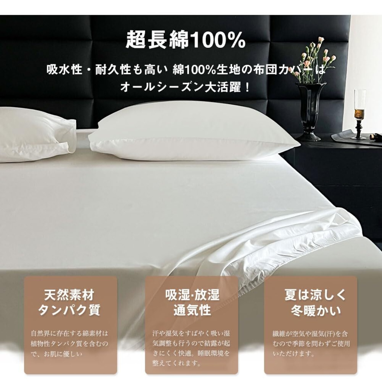 【ホテル仕様の贅沢ベッドカバー】:厳選素材と厳格な品質にてできたホテルのような贅沢な寝心地をご自宅にて体験。ぜいたくで品質の良い仕上げと耐久性で、長く愛用していただけます。超長綿を使用した贅沢なボックスシーツで、やわらかくてしなやかな風合いがお肌にもやさしいオールシーズン快適な寝具環境に近づけてくれます。耐久性と柔軟性を兼ね備えた極上の寝心地を実現します。