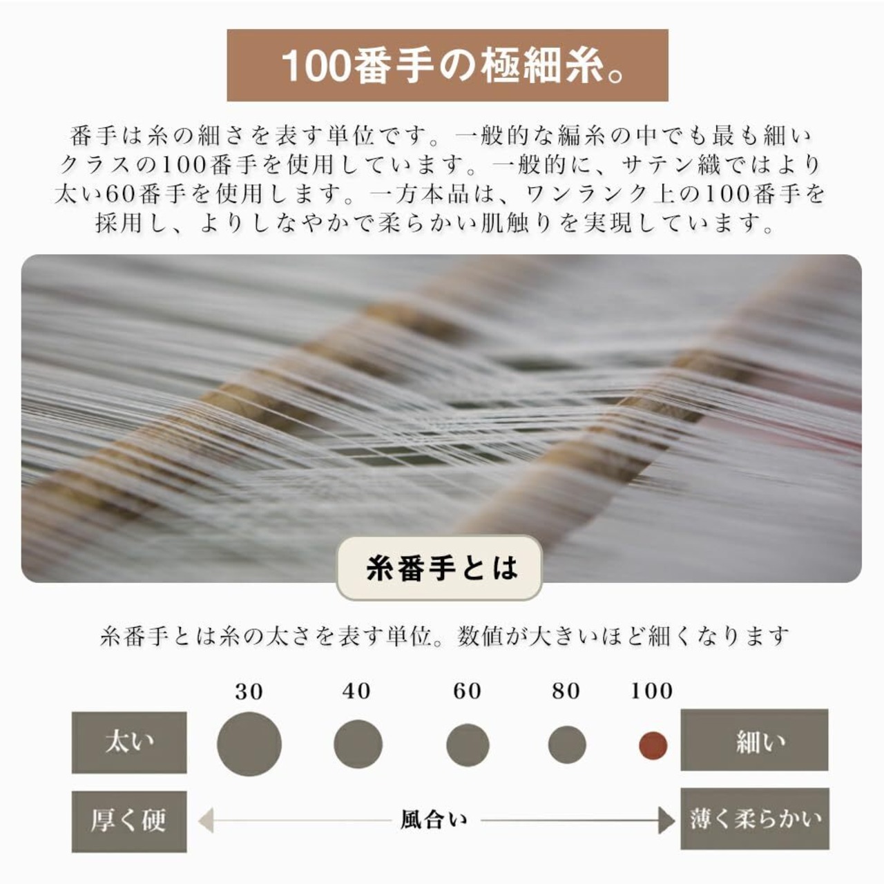 【100%コットン】:素肌に触れるのに最適な100%コットン製サテン仕上げのマットレスカバー。優しくふんわりとした肌ざわりに優れた通気性と柔軟性で、快適な睡眠求める方におすすめです。