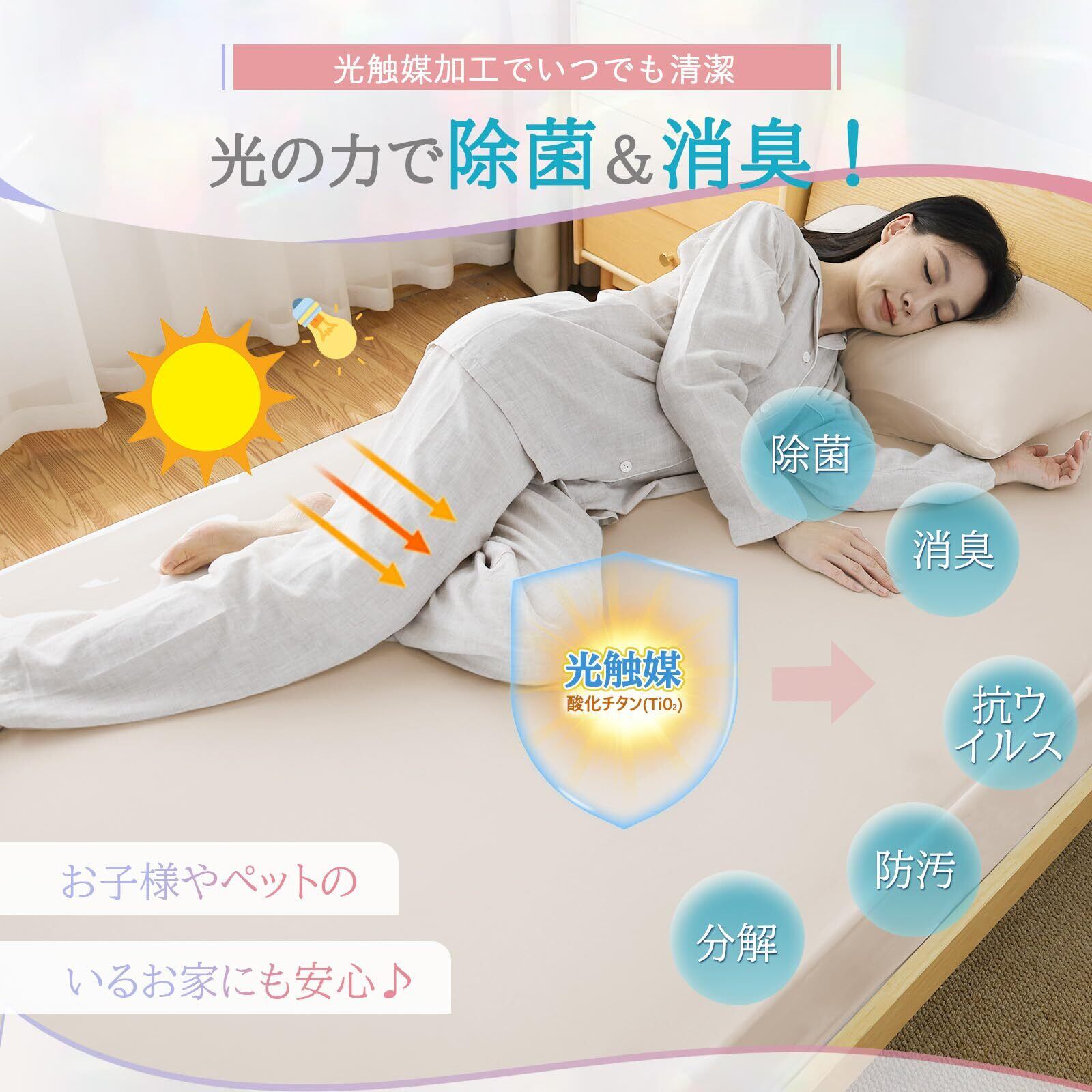 【光触媒加工で、いつも清潔・安心】表面には光触媒除菌加工を施しており、太陽光や室内灯の光で細菌の増殖を抑えます。見えない汚れもブロックして、敏感肌の方やお子さまにもおすすめです。