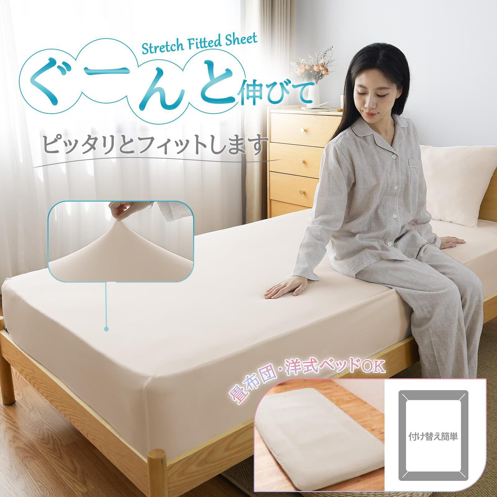 【在庫セール】BestOnePlus ボックスシーツ シングル~セミダブル兼用【光触媒加工】抗菌防臭 のびのび ベッドシーツ マットレス・敷ふとん兼用 ベッドカバー マットレスカバー オールシーズン 吸水速乾 通気性 着脱簡単 アイボリー