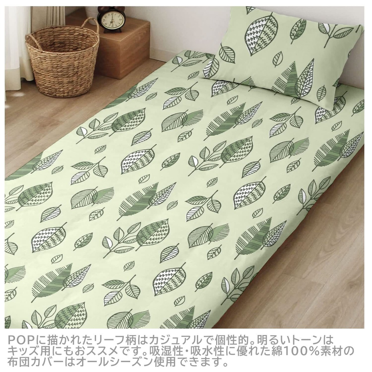 メリーナイト(Merry Night) 着脱簡単 L字ファスナー 綿100% 敷布団カバー 「ナチュラルリーフ」 グリーン シングルロング 約105×215cm 大きく開く ふとんが入れやすい 洗える 衛生 清潔 オールシーズン FF13119-53