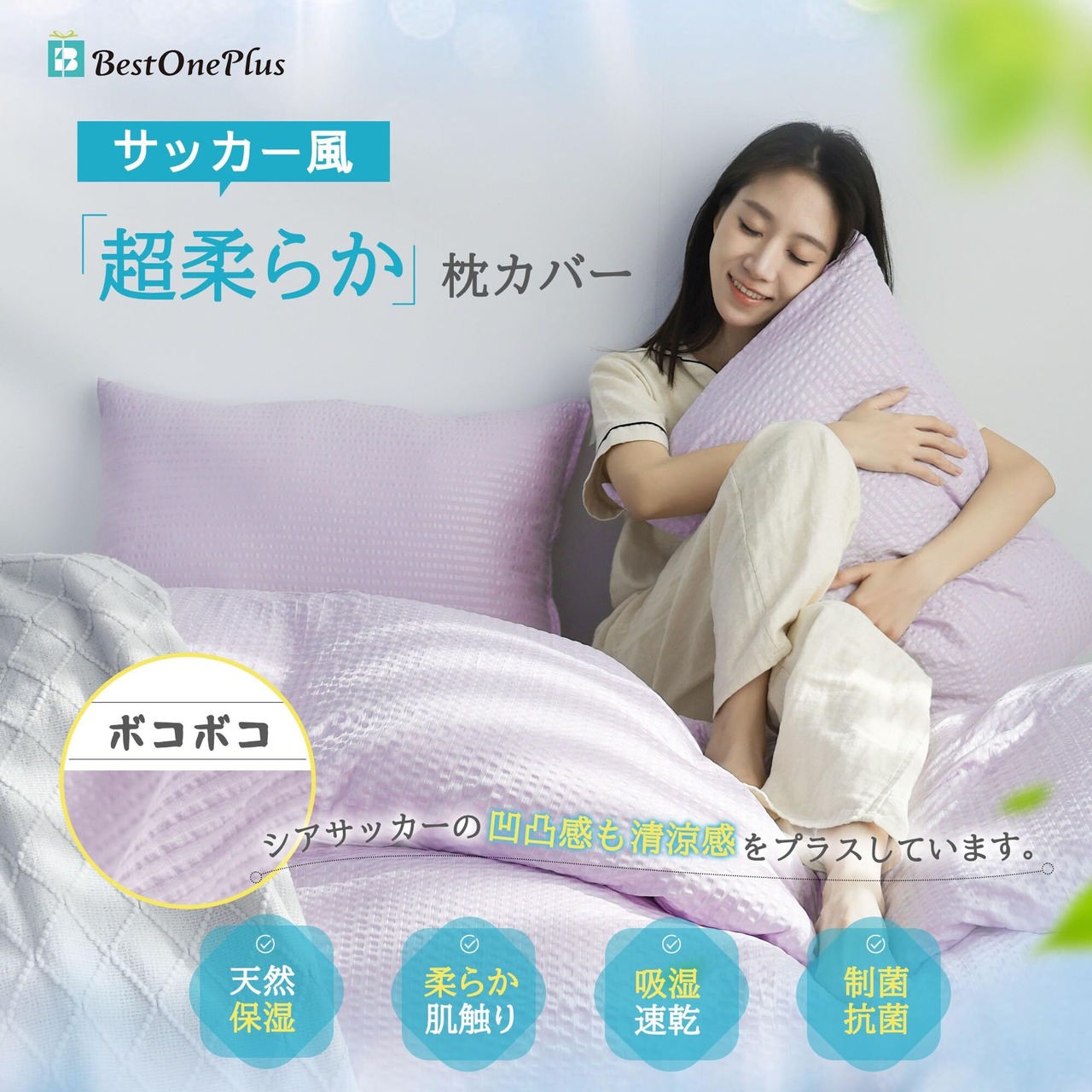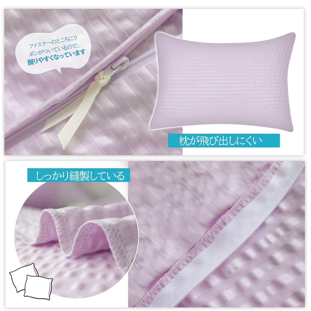 【特価セール】BestOnePlus 枕カバー 2枚セット まくらカバー シアサッカー風 ポコポコ 椿油保湿 柔らかな肌触り速乾 アレルギー対策 ダニ防止 光触媒加工 抗菌 防臭 洗える 耐久性 色褪せない ピローケース 洗い替え ファスナー開閉式 オールシーズン ストライプ 43X63CM パープル