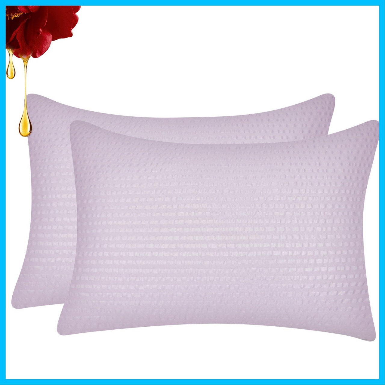 BestOnePlus 枕カバー 2枚セット まくらカバー シアサッカー風 ポコポコ 椿油保湿 柔らかな肌触り速乾 アレルギー対策 ダニ防止 光触媒加工 抗菌 防臭 洗える 耐久性 色褪せない ピローケース 洗い替え ファスナー開閉式 オールシーズン ストライプ 43X63CM パープル