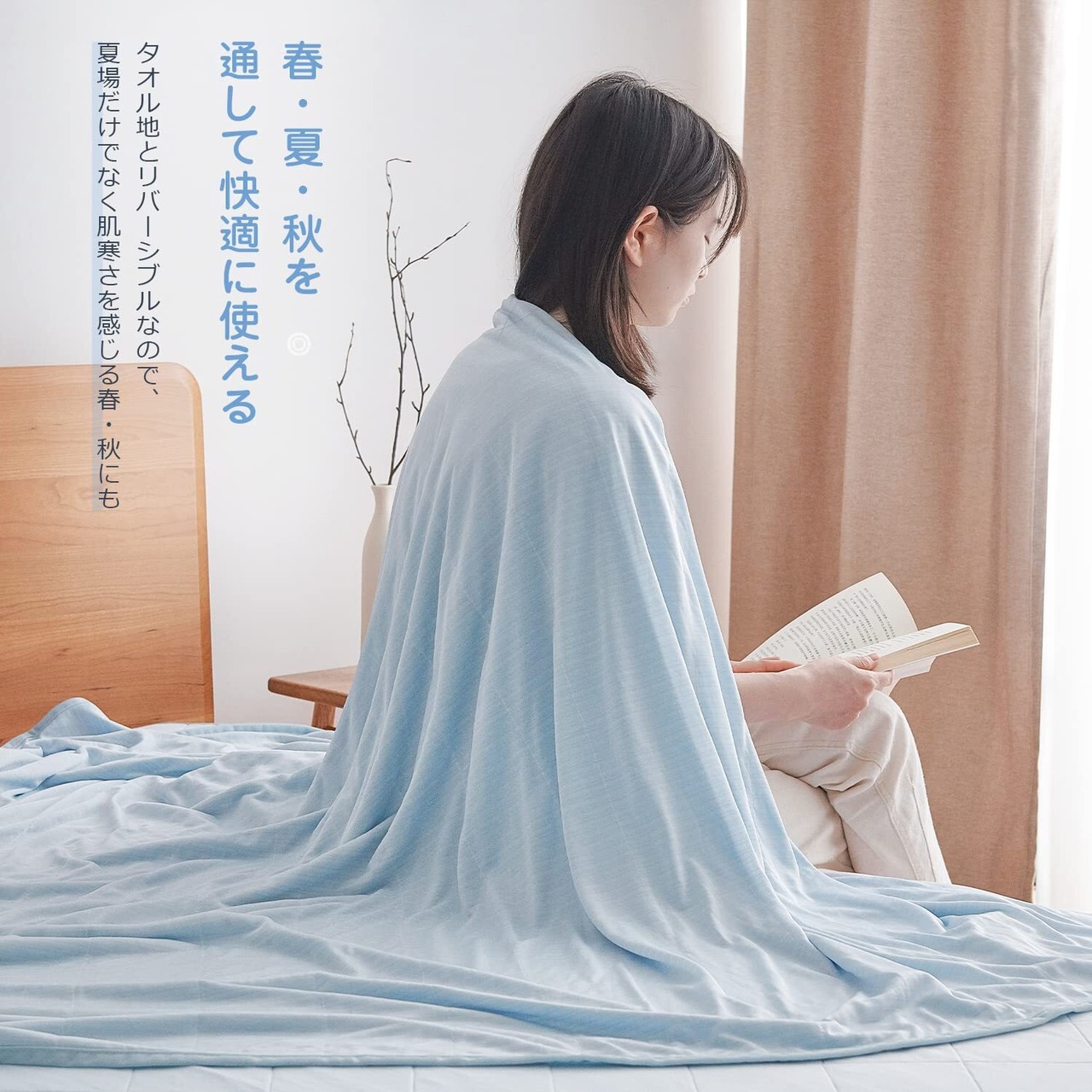 クモリ(Kumori) 接触冷感 タオルケット シングル ひんやり 夏用 ブランケット リバーシブル 冷感地&タオル地 吸汗吸湿 毛布 冷感ケット れいかん 通気 エアーケット クールケット 洗える キルトケット 速乾 140X190cm ライトブルー