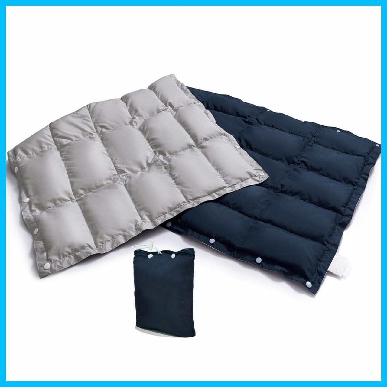 【在庫セール】KOKOSUN ダウン ブランケット ひざ掛け 肩掛け 腰巻き 多機能 防寒 冷房対策 スナップボタン付き オフィス 家庭用 車中泊 アウトドア キャンプ 旅行用 収納袋付き (ダークブルーとシルバーグレー, 140*60cm)