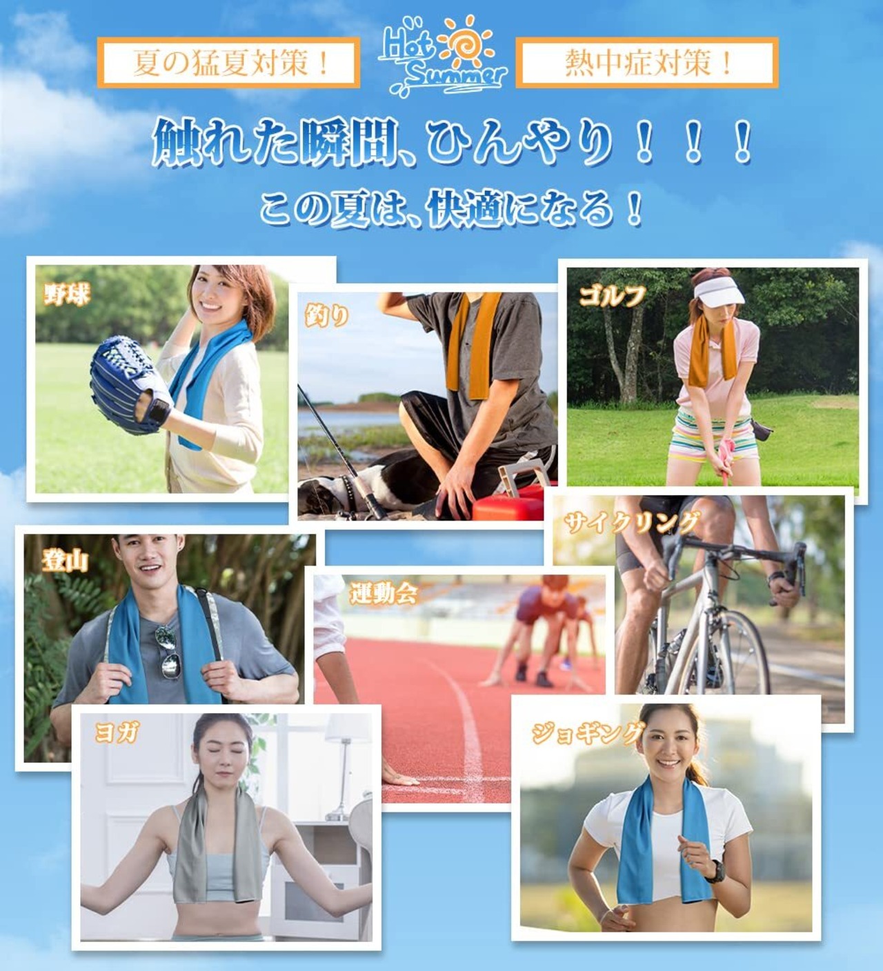 【クールタオル・持续冷感】SOHAPI冷感タオルは100%冷感繊維素材を採用した、タオルから水が蒸発する際、気化熱の作用で効率よく冷却効果が得られ、 タオルがすぐに冷たくなります。水で濡らして絞った後、タオルを振るだけでさっと冷ますことができます。水分が残った状態であれば、ぬるくなっても揺るだけで涼しさが戻ります。この冷却タオルは効率的に体の表面温度を下げ、生地に水分が含まれていれば振ることで何度でも冷感体験できます!
