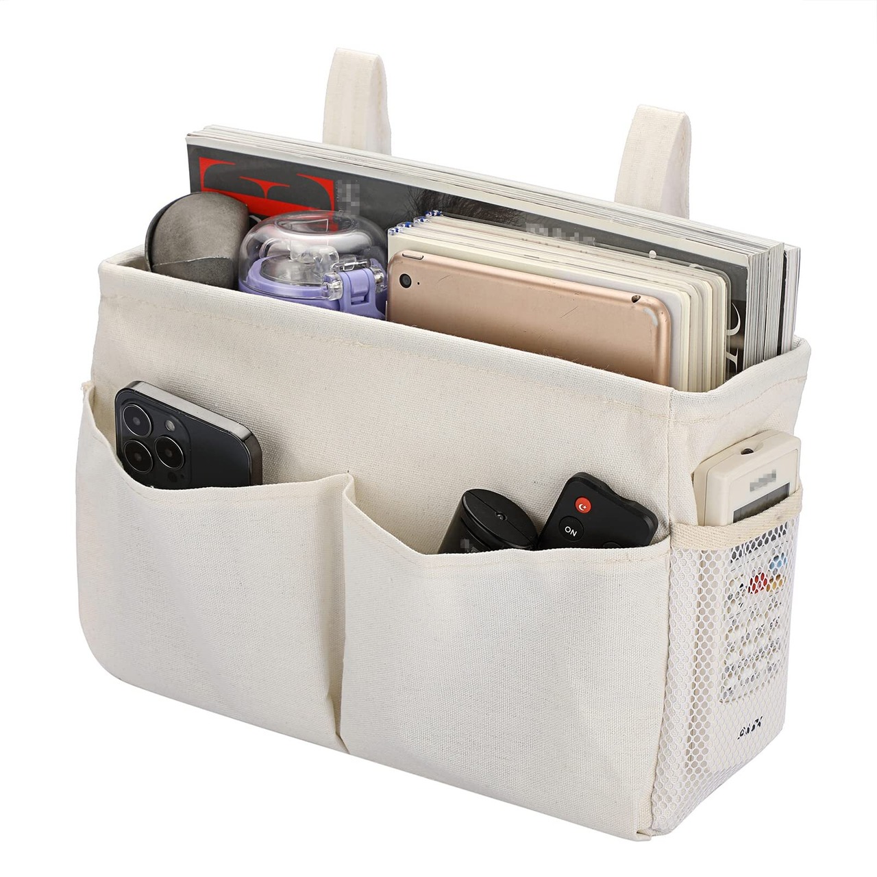 Sumnacon ベッドサイド収納ポケット 大容量 多機能収納かご 吊り下げ収納袋 掛け袋 小物収納ボックス 収納かご 雑貨収納 雑誌ブック マルチポケットオーガナイザー 防水素材収納袋 ベルクロ 学生寮 家庭 車用(ホワイト)