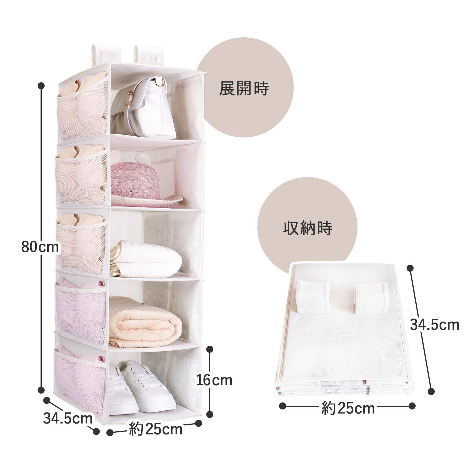 吊り下げ収納 5段 折りたたみ ポケット衣類下着収納 15個 衣類ラック 両面収納 クローゼット 型崩れ防止 衣類クローゼットラック 大容量 多機能