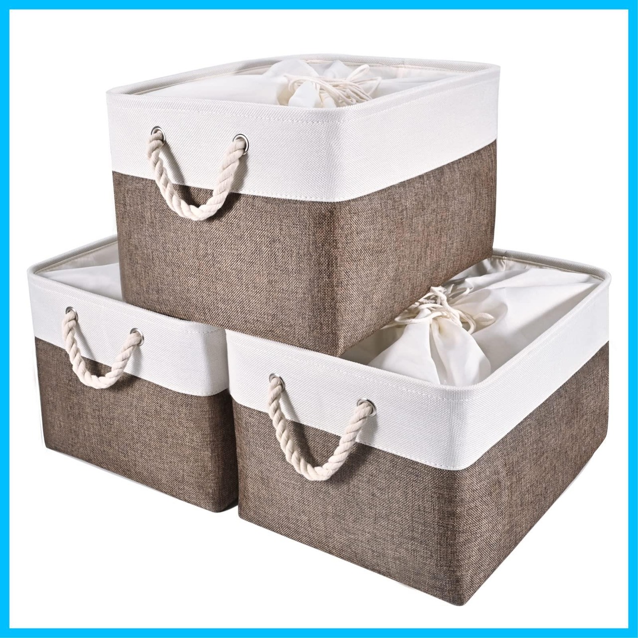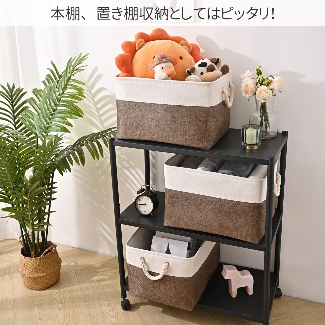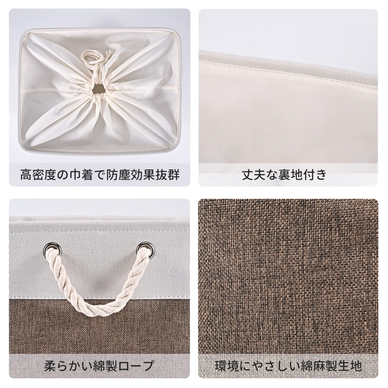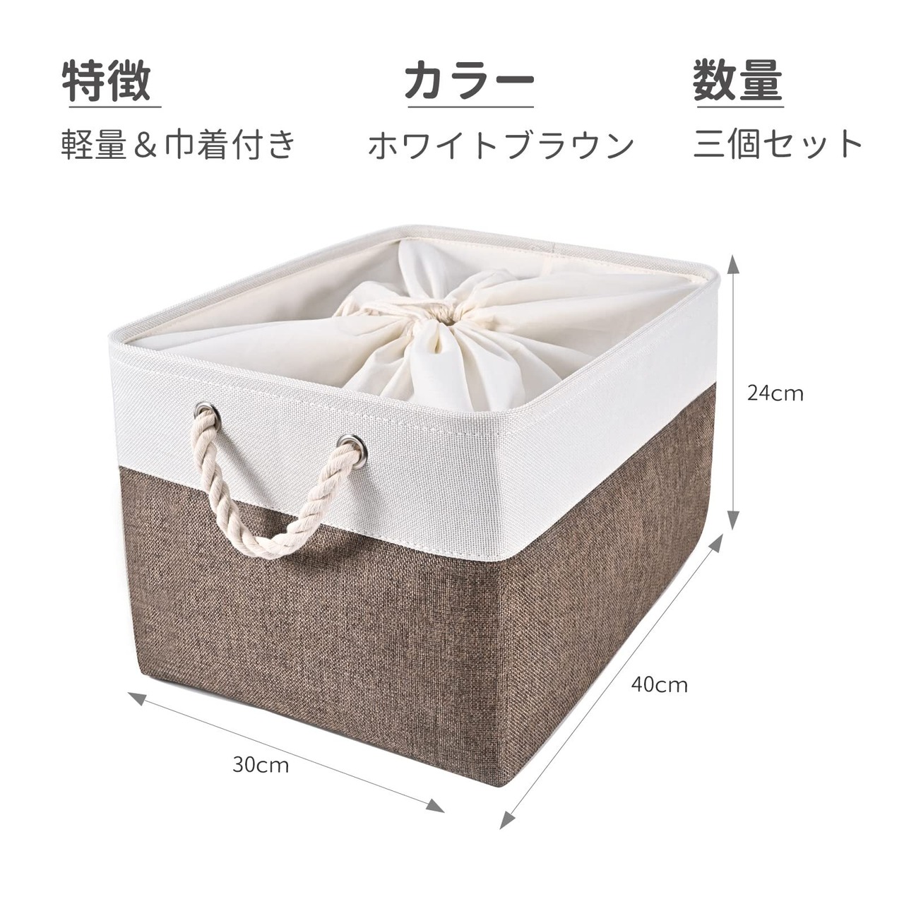 【在庫セール】【 限定】STVICTORY 収納バスケット 収納かご 3個セット 40×30×24cm 無臭 巾着 取っ手付き オシャレな収納ボックス ランドリーバスケット ストレージバスケット 布 洗濯かご インテリア雑貨 衣類 小物収納 引き出し 折り畳み式 綿麻製 防水 防湿 防塵 高耐久性 長方形 (ホワイトブラウン)