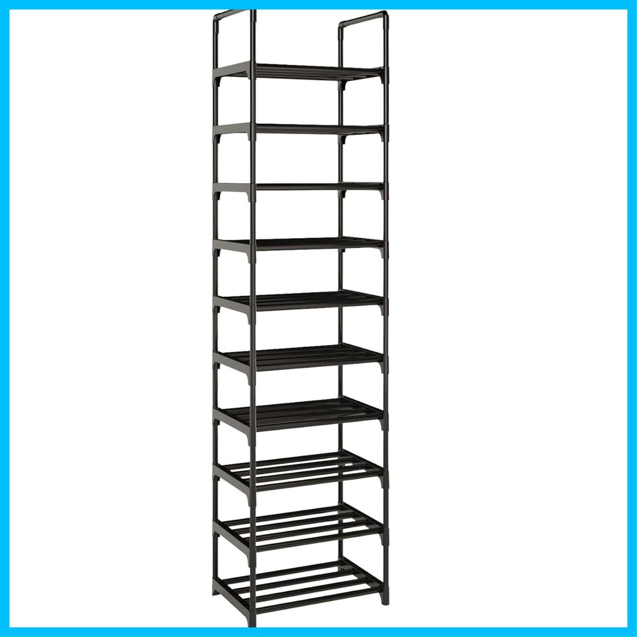 【省スペース 大容量のシューズラック ブラック】サイズ:幅約45×奥行30×高さ176cm,靴ラックは、全10段で、靴を18-20足収納できます。収納スペースが狭く、靴が多い方に、この靴ラックは非常に好適です。フットプリントが小さいため、靴ラックはスペース効率が非常に高く、すべてのコーナーに適しています。