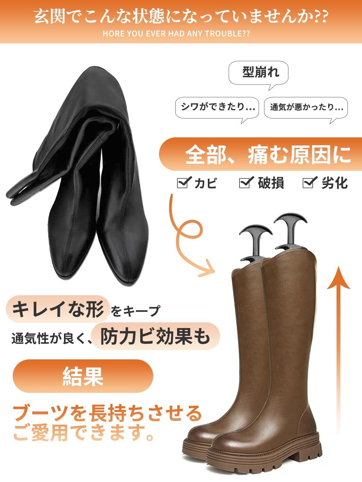 [HEPPYENCE] シワが伸びて倒れない ブーツキーパー 型崩れ防止 シューキーパー ブーツスタンド ロングブーツ ロングブーツ 長靴 通気 省スペース [並行輸入品]