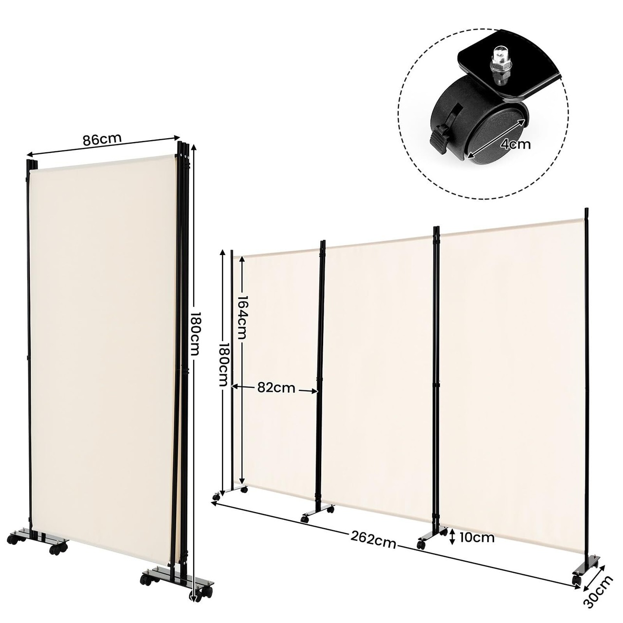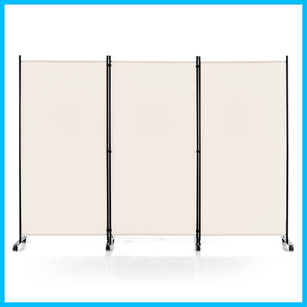 TANGKULA パーテーション 間仕切り 3連 キャスター付き 折りたたみ 布タイプ 高さ180cm 幅260cm 目隠し スクリーン 屏風 衝立 軽量 コンパクト収納 オフィス 事務所 ベージュ