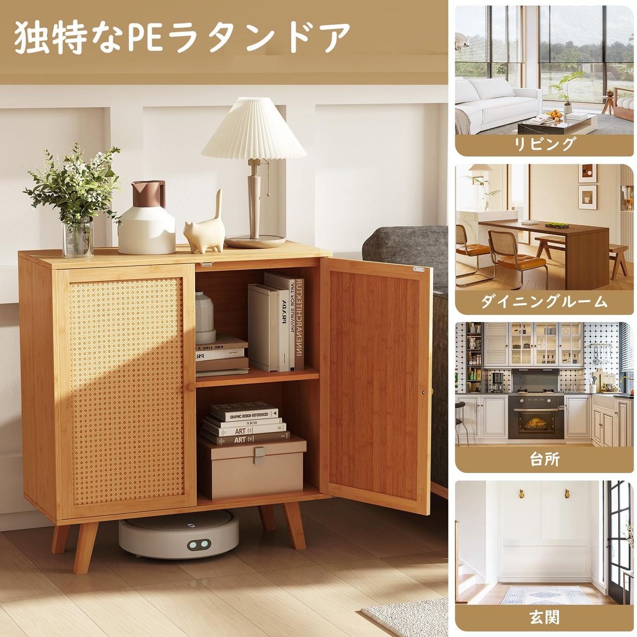 COSTWAY キャビネット 竹製 サイドボード ラタン 藤編み リビング 収納 リビングチェスト 収納家具 食器棚 下駄箱 書類 衣類 洋服 ダイニングルーム リビングルーム 玄関 ベッドルーム