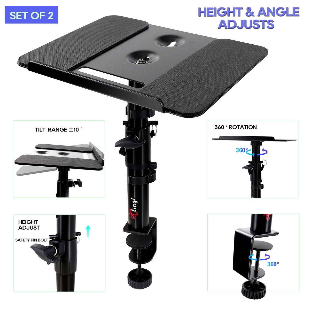 Tlingtスタジオモニターおよびスピーカースタンド、クランプ式デスクトップスタンド 2 個セット、30x23 cm メタルトレイ、モニタースピーカー、ブックシェルフスピーカー、ラップトップ用。