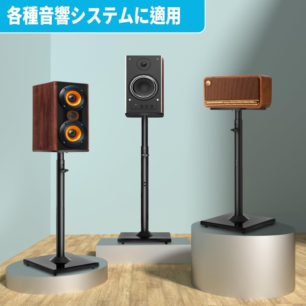 BQKOZFIN スピカスタッド スピーカーマウント ポール型 高さ調整可能 高さ81~106cm 天板:長さ25x幅25x厚さ1.5cm スピカ用 耐荷重各5kg 日本語説明書付き SB-206モデル ブラック【2台1組】