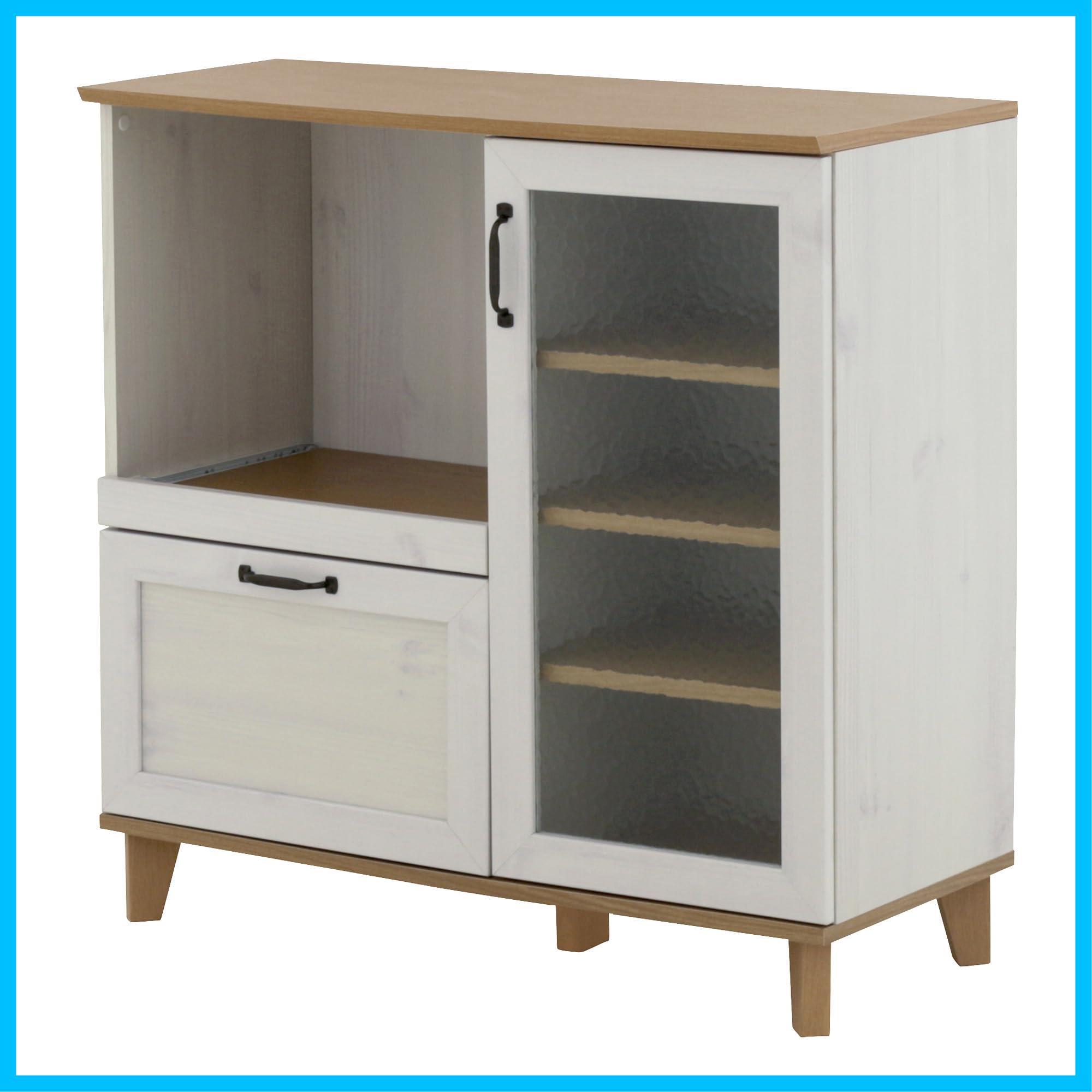 【在庫処分】佐藤産業 REBISTO キッチン レンジボード 食器棚 幅90.1㎝ 奥行き40.5cm 高さ90cm ホワイト・グレーナチュラル ツートンカラー 木製 RV90-90RB WH/GN