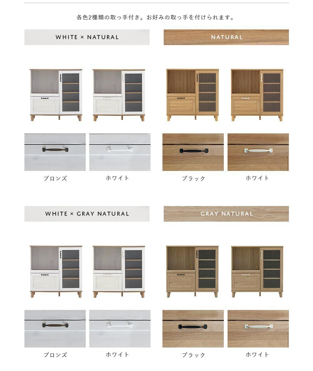 モノトーンのホワイト、バイカラーのホワイト・ナチュラルの2色からお選び頂けます。付属品として2色の取っ手付き。
