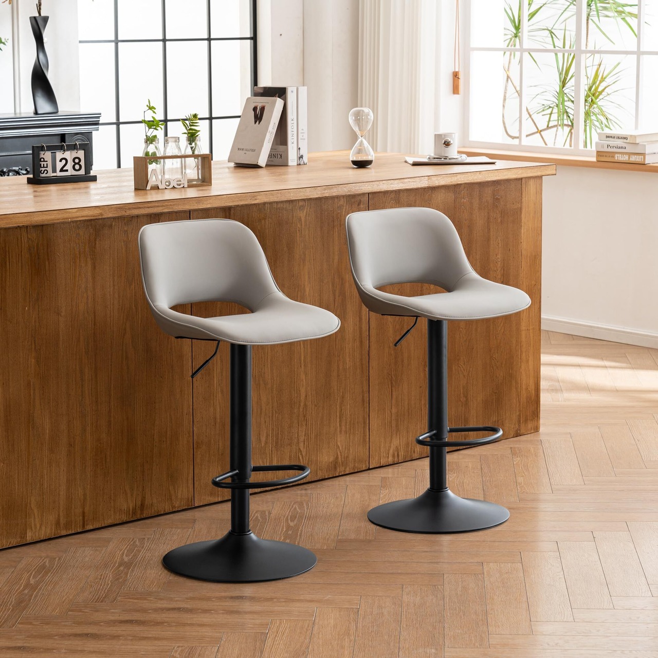 【人気商品】Baolande 灰色 カウンターチェア 2脚セット バースツール2脚セット モダン 回転 PUフェイクレザー張り カウンターの高さ調節可能 頑丈 バーチェア 中空の背もたれ付き キッチンアイランド用 軽量 組み立て簡単 5年