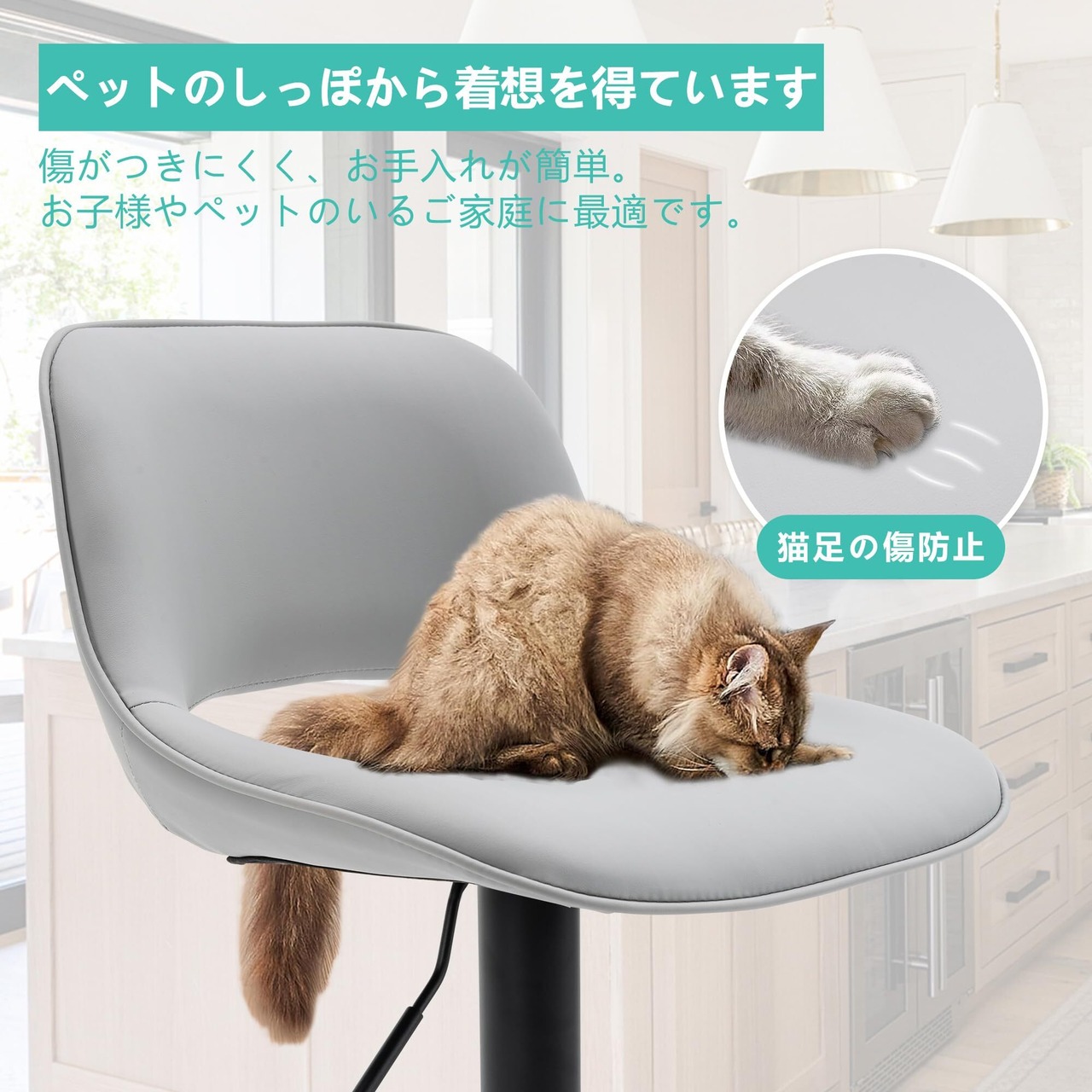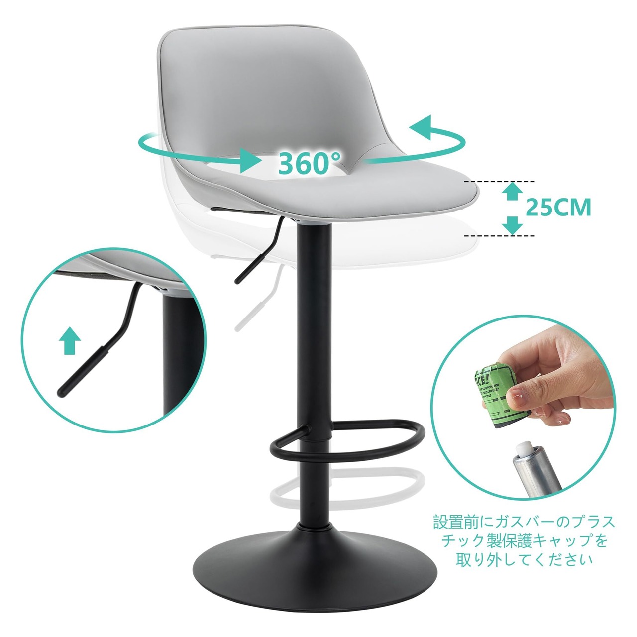 Baolande 灰色 カウンターチェア 2脚セット バースツール2脚セット モダン 回転 PUフェイクレザー張り カウンターの高さ調節可能 頑丈 バーチェア 中空の背もたれ付き キッチンアイランド用 軽量 組み立て簡単 5年