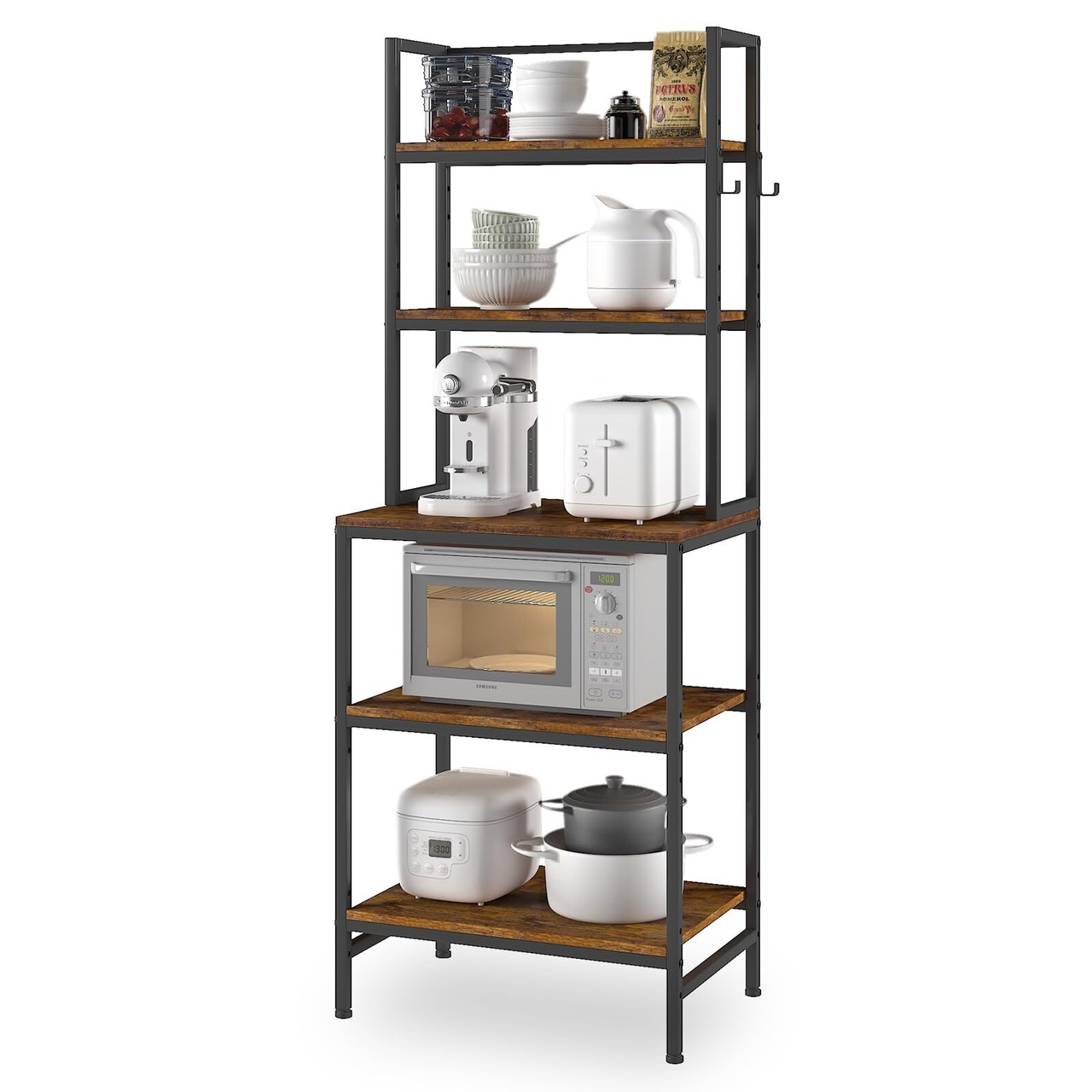 CJMM レンジ台 5段式 レンジラック レンジボード レンジおき 台 電子レンジ台 キッチン収納ラック 食器棚 キッチン 省スペース 幅約60×奥行き約40×高さ約167cm