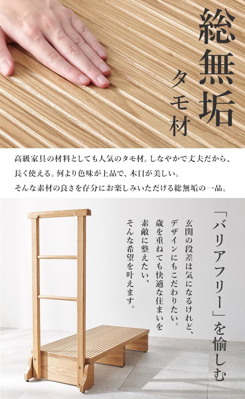 【新着商品】萩原 玄関踏み台 玄関台 手すり付き踏み台 手すり台 頑丈 総無垢材 【安心の耐荷重150kg】 ひざ 腰 負担軽減 子供 高齢者 ペット 幅97 ナチュラル MFD-6909NA