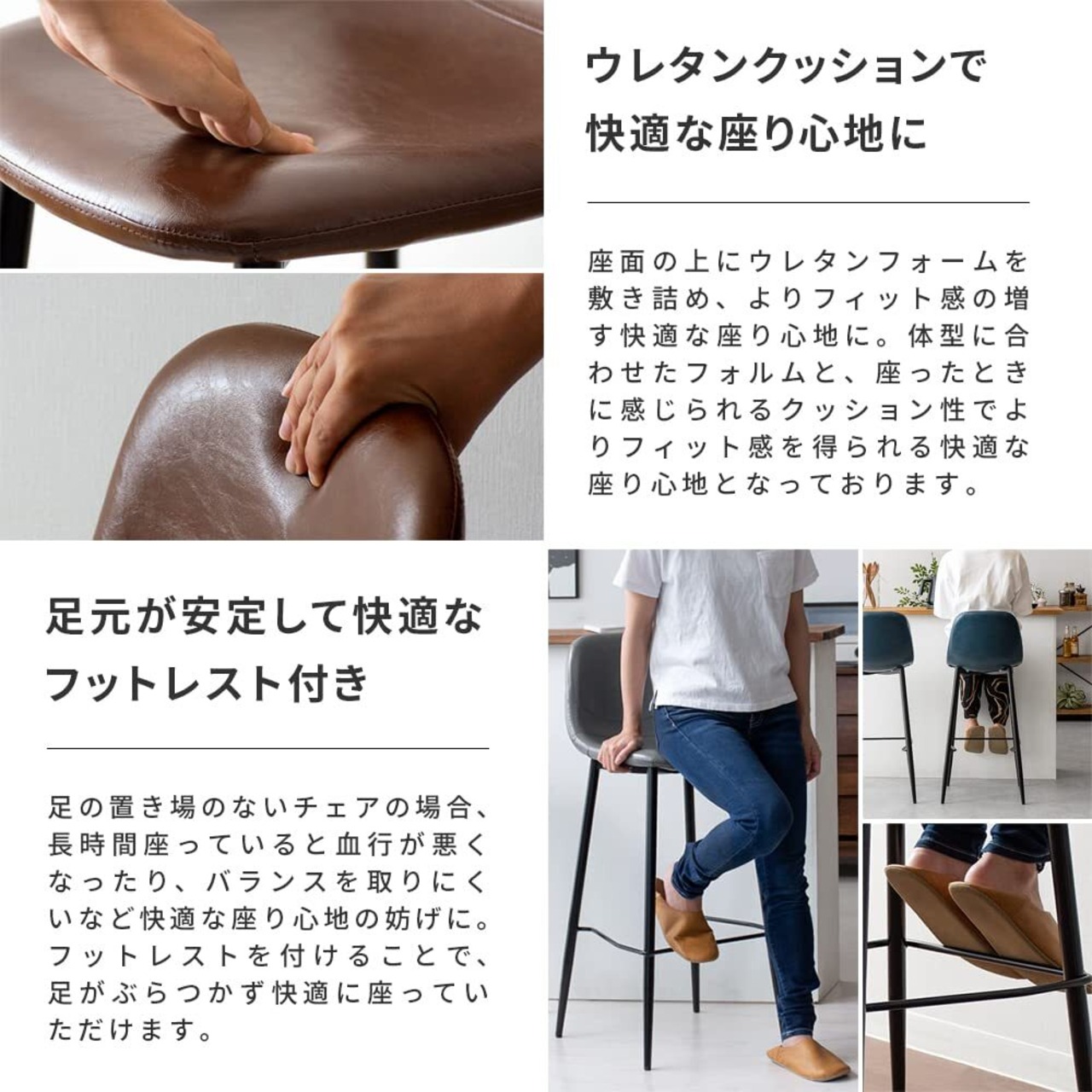 【材質】レザータイプ座面/合成皮革(ポリウレタン)、ファブリックタイプ座面/ポリエステル100、クッション材/ウレタンフォーム、脚部/スチール(粉体塗装仕上げ)