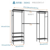 「幅伸縮可」洋服の量やお部屋のスペースに合わせて、ハンガーポール伸縮して、ラック幅178.5~228cmの間で調節できます。棚板の高さもお好みで調整できるクローゼットオーガナイザーです。