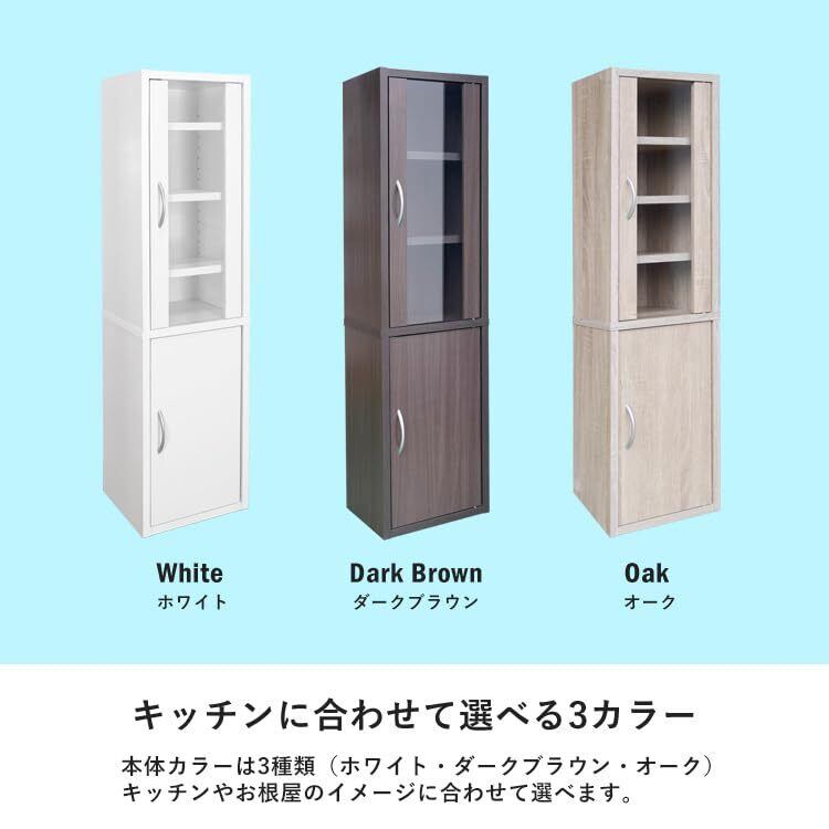 キッチンラック 食器棚 スリム 幅32cm 高さ120cm ミドルタイプ コンパクト 薄型 一人暮らし 扉タイプ ガラス扉 シンプル オーク 組立品