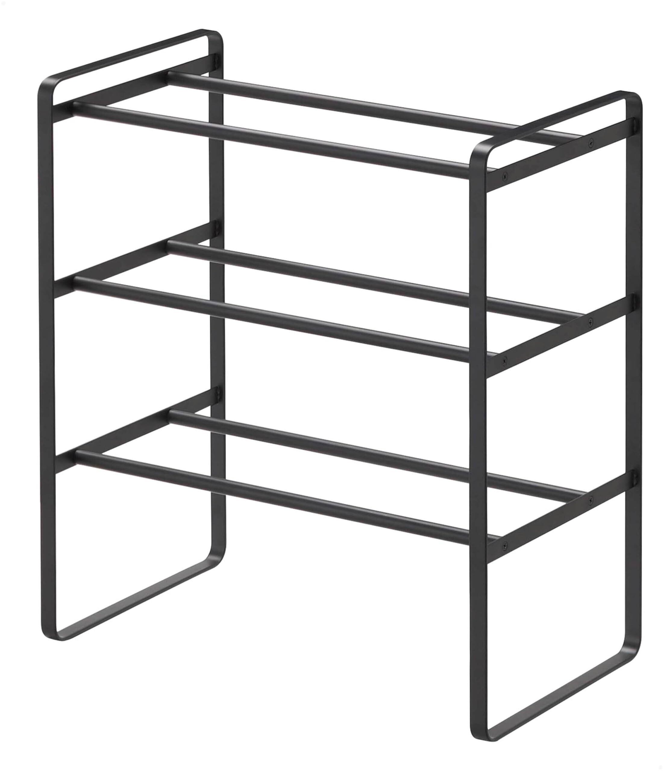 山崎実業(Yamazaki) 伸縮 シューズラック 3段 ブラック 約W41~70×D25×H46cm フレーム Frame 玄関 靴 収納 7556