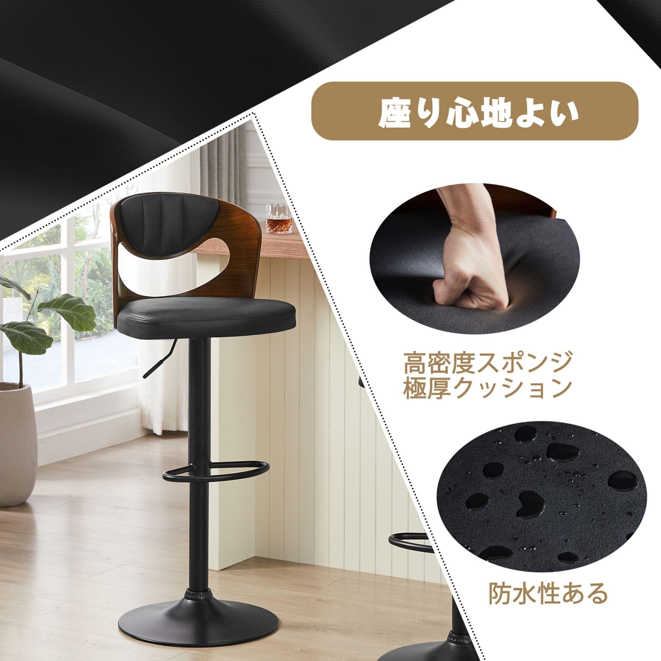 【人気商品】VECELO カウンターチェア バーチェア 昇降式 回転 1脚 ハイチェア フットレスト付き 背もたれ付き 厚み ダイニング キッチン 調節可能 コンパクト 軽量 おしゃれ アイランドキッチン カウンター 木目調 ブラック【日本正規輸入品】