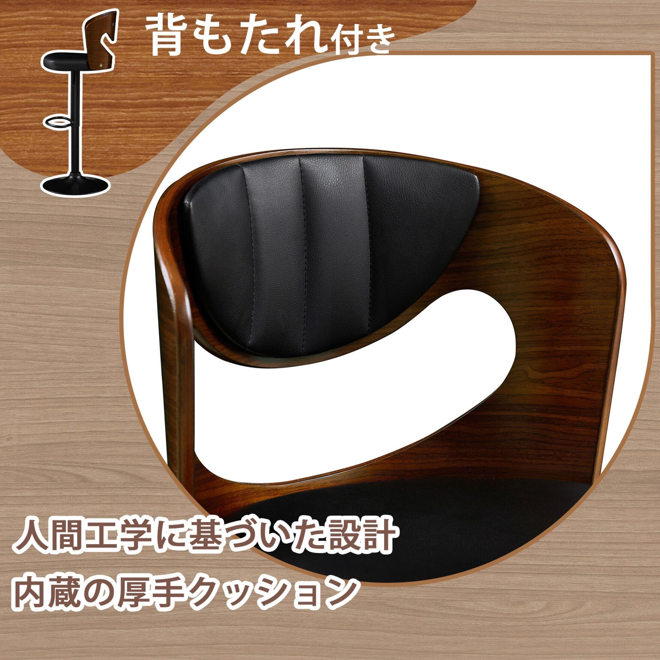 VECELO カウンターチェア バーチェア 昇降式 回転 1脚 ハイチェア フットレスト付き 背もたれ付き 厚み ダイニング キッチン 調節可能 コンパクト 軽量 おしゃれ アイランドキッチン カウンター 木目調 ブラック【日本正規輸入品】