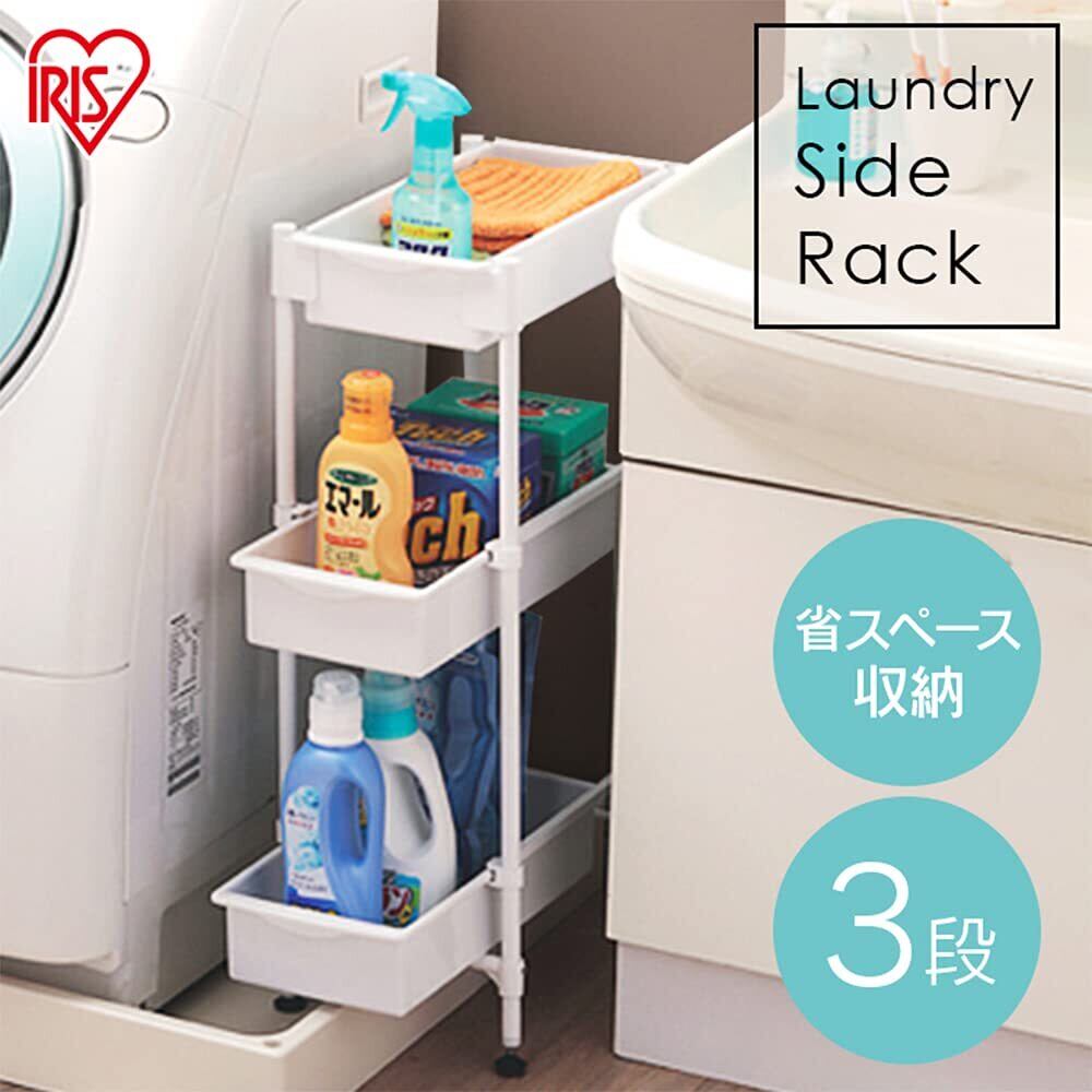 洗濯機やキッチンまわりの用品をスリムにスッキリ収納できるサイドラックです。