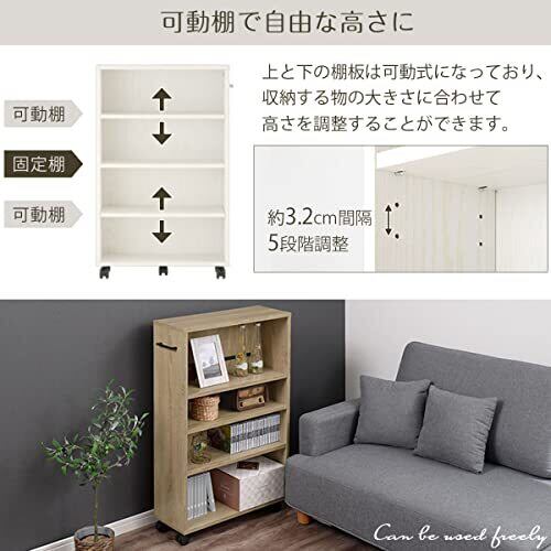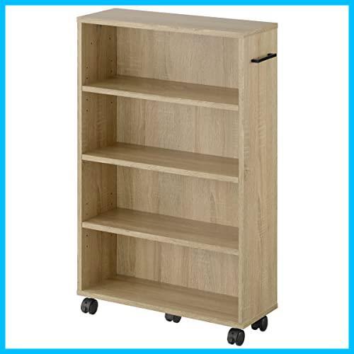 【人気商品】ぼん家具 本棚 キャスター付き 隙間収納 取っ手付き 収納カート 押し入れ収納 ワゴン 約幅20cm オーク