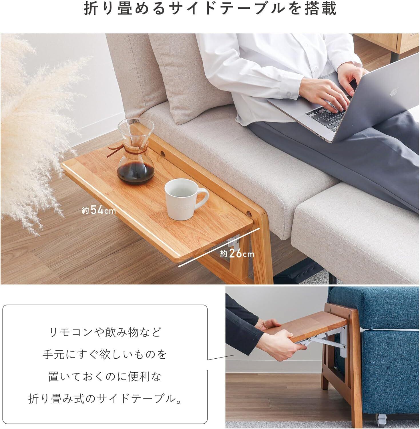 【折り畳めるサイドテーブルを搭載】片側には折り畳み式のサイドテーブルを搭載しており、使用する際はテーブルの天板を上げるだけで簡単に使用できます。リモコンや飲み物など手元にすぐ欲しいものを置いておくのに便利なサイドテーブルです。