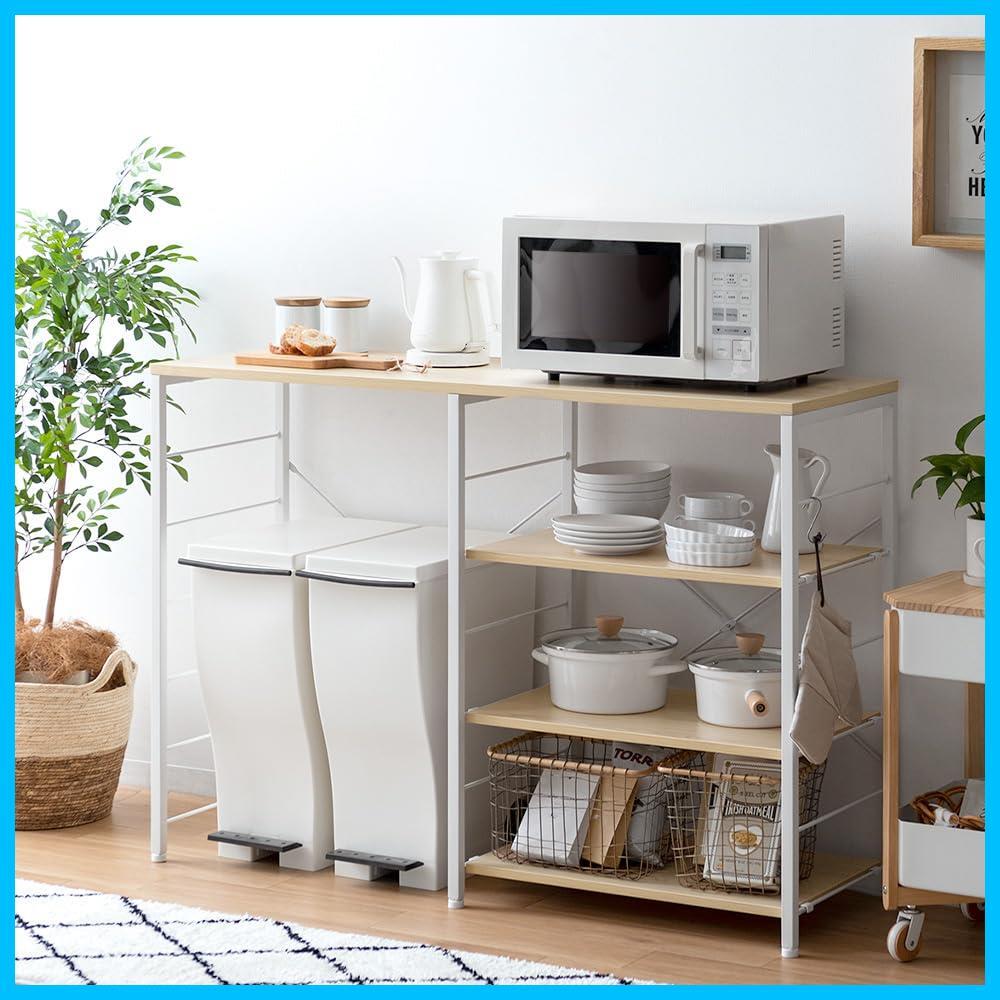 エア・リゾーム レンジ台 レンジラック キッチンラック ゴミ箱上ラック ゴミ箱収納キッチンカウンター emery(エメリー) 120cm幅 (ナチュラル×ホワイト, 背面なし)