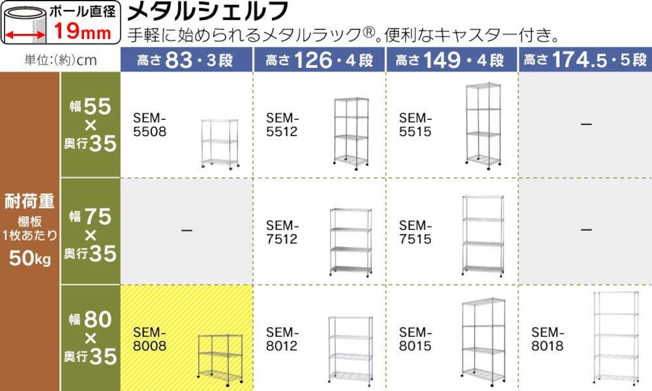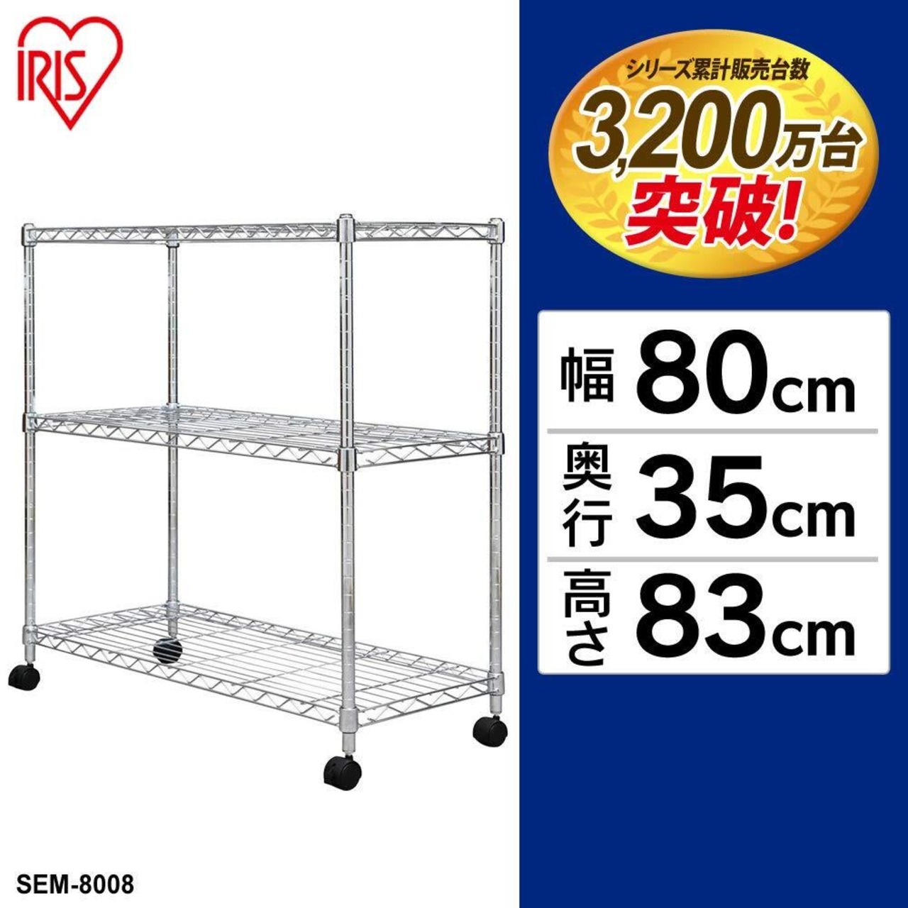 【在庫処分】アイリスオーヤマ メタルラック本体 3段 キャスター付き 防サビ加工 ポール径19mm 幅80×奥行35×高さ83cm メタルシェルフ スチールラック サビに強い 銀 SEM-8008