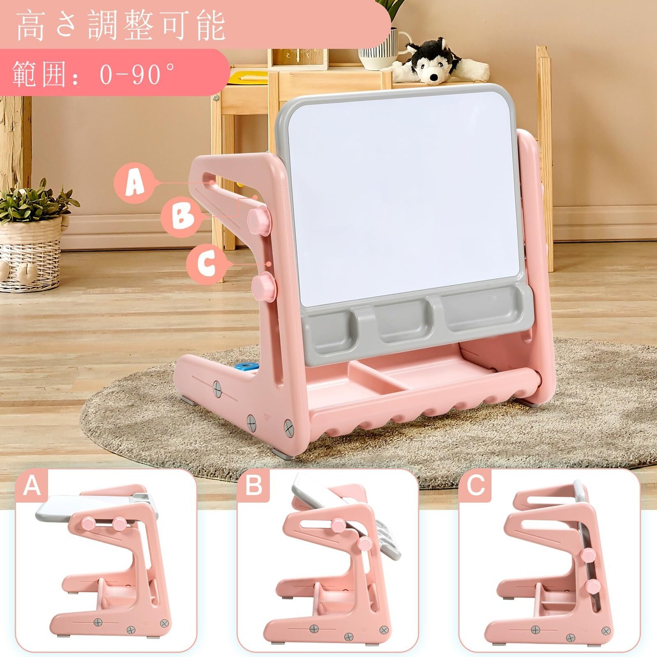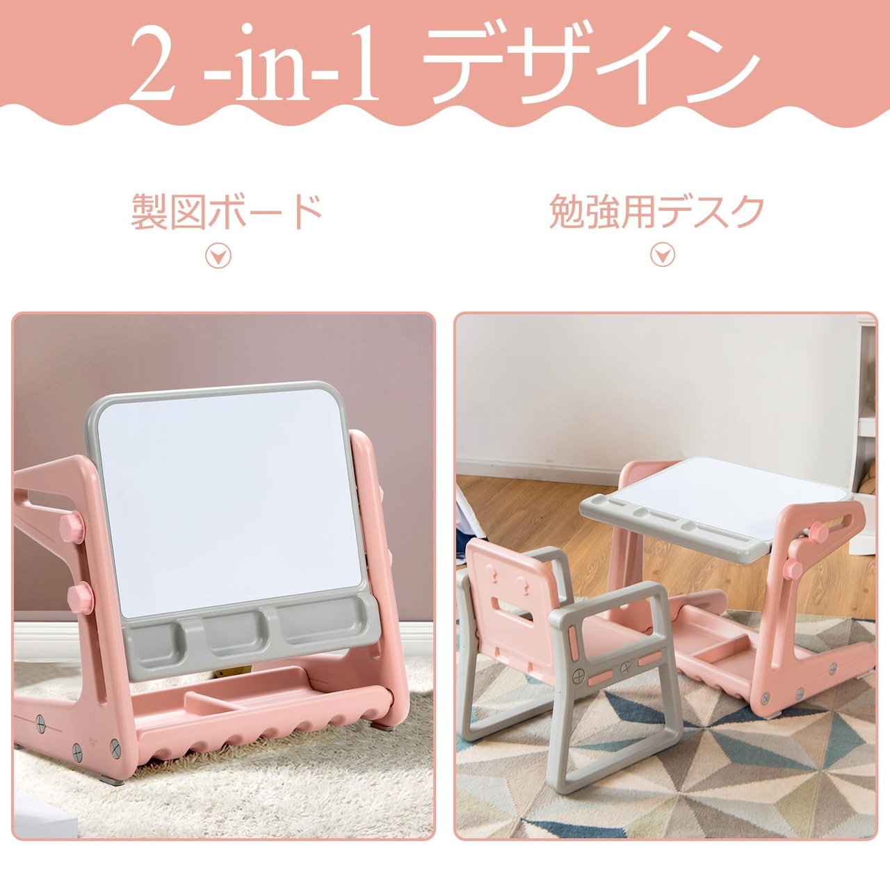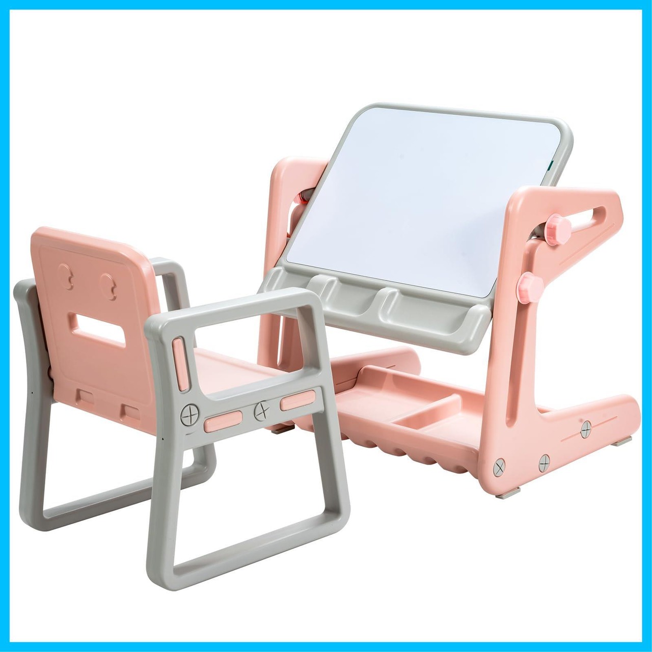 COSTWAY 子供用テーブル 椅子セット 幼児 机 キッズテーブルとチェアセット 子どもデスクセット 絵かきボード 角度調整可能 収納スペース付き 絵本読み 絵かき 多機能 入園祝い リビング学習 保育園 家庭用 (ライトピンク)