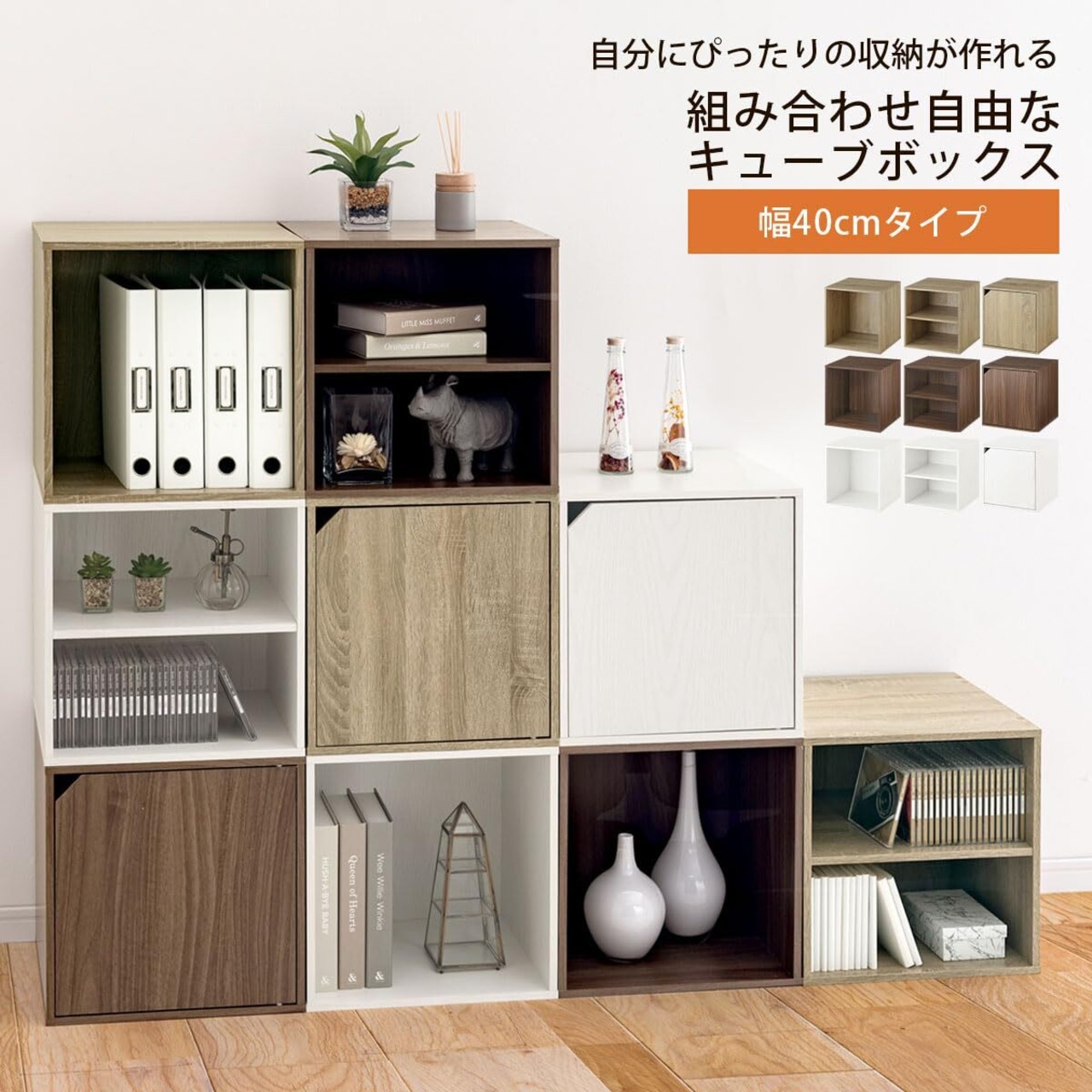 ぼん家具 棚付き キューブボックス 40×40cm 木製 収納 本棚 カラーボックス オーク