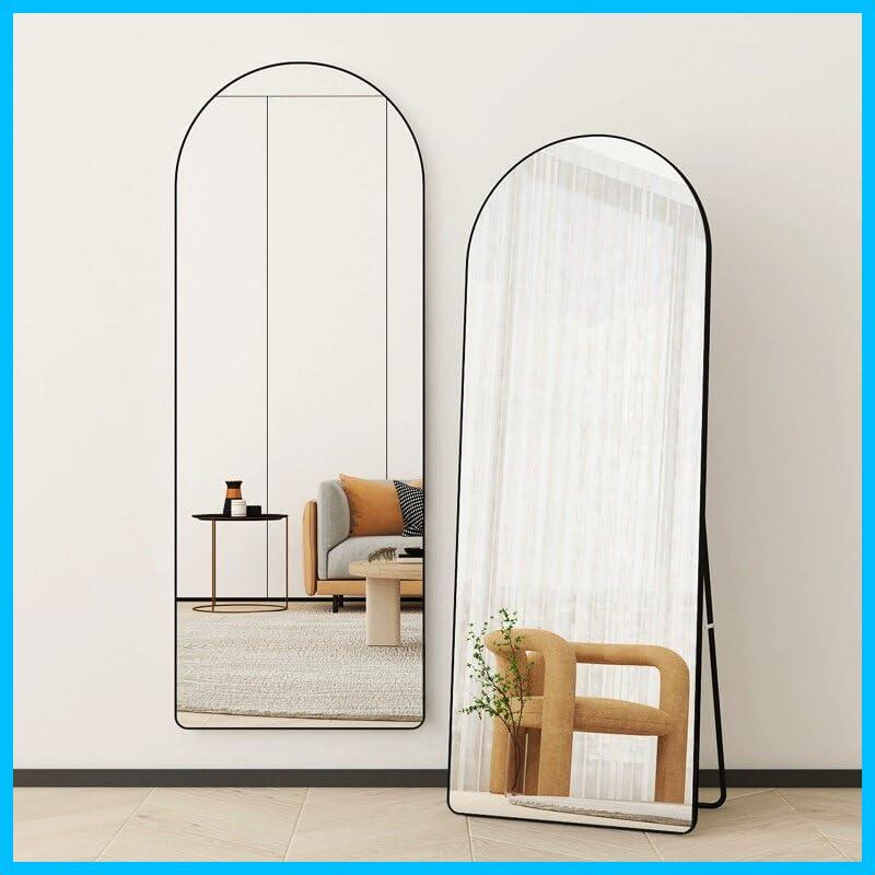 【特価セール】全身鏡 姿見鏡 スタンドミラー アルミ合金フレーム おしゃれ アーチ型 折りたたみ 壁掛け 両用 ウォールミラー 全身ミラー 飛散防止 幅40×高さ150cm 洗面所 化粧 浴室 お風呂 玄関 (定番の黒です 40X150CM)